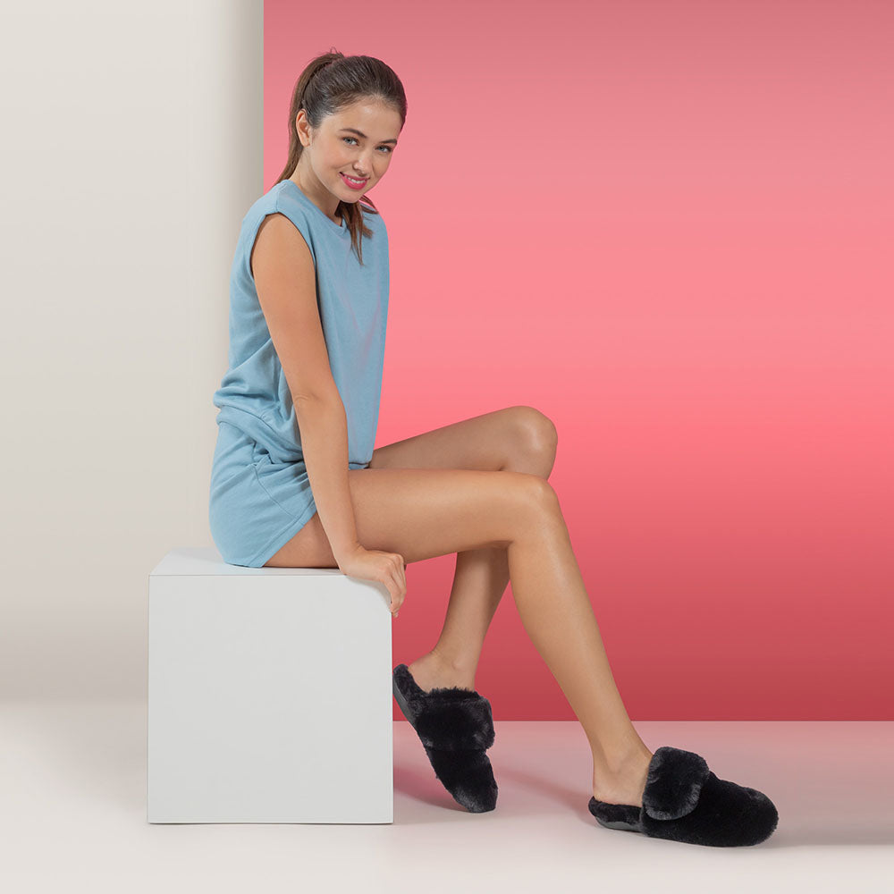 Wrap your feet in luxe comfort with the Misty! These slippers with arch support feature memory foam cushioning, a rubber outsole, and an adjustable strap for next-level coziness. The Misty is sure to give you that “walking on clouds” feeling in the comfort of your own home.