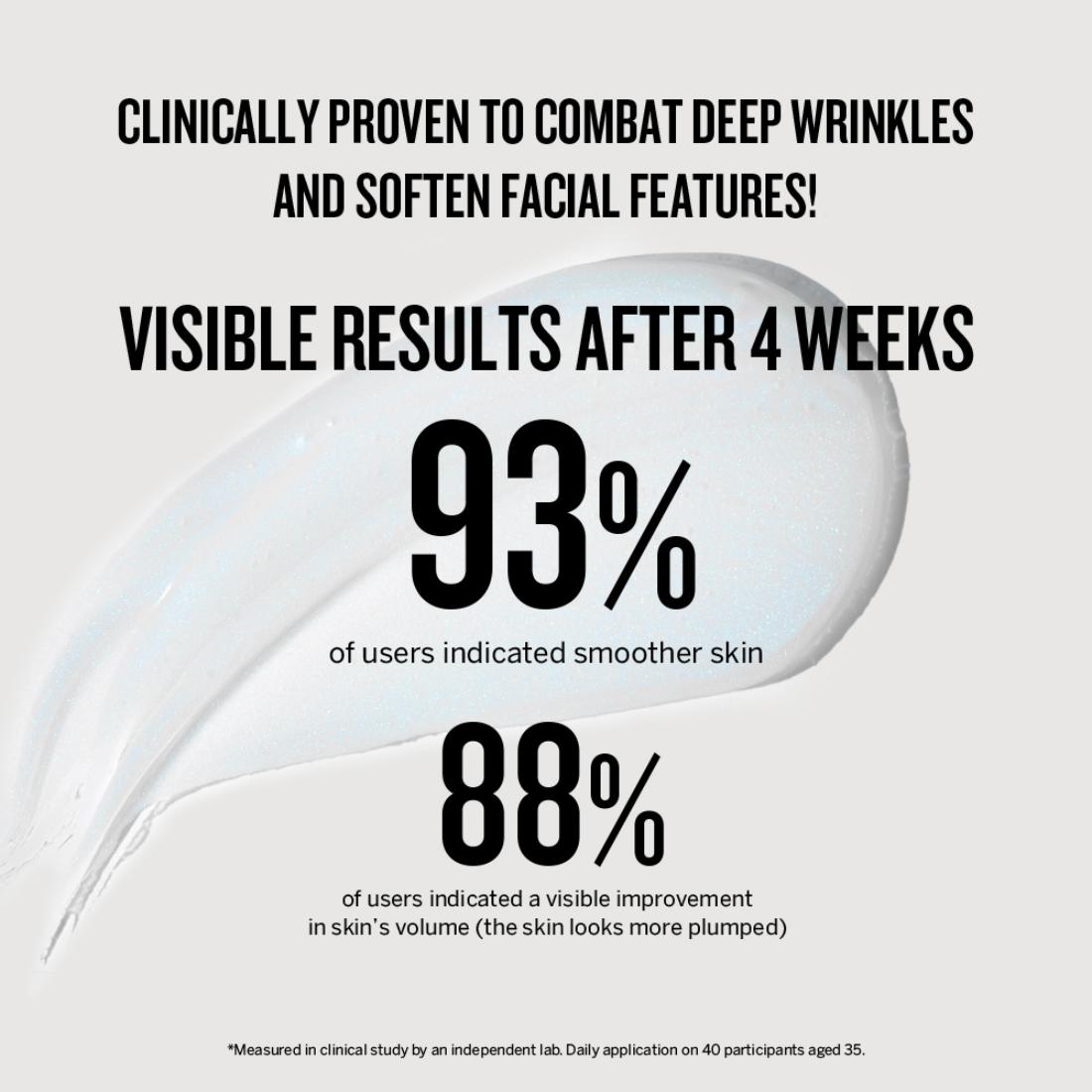 This powerful smoothing serum targets skin’s age-related wrinkles, even around the eyes and the mouth, and helps restore your skin’s volume for a smoother, firmer, more refined appearance. Formulated with an exclusive Apple of Sodom™ complex, this serum works to combat deep wrinkles and soften facial features.