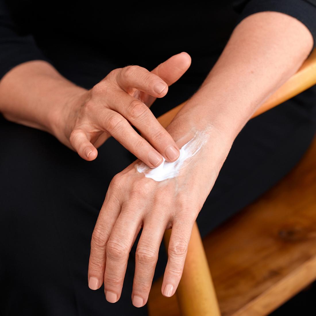 Apply a small amount to clean hands several times a day as needed, especially after washing hands
