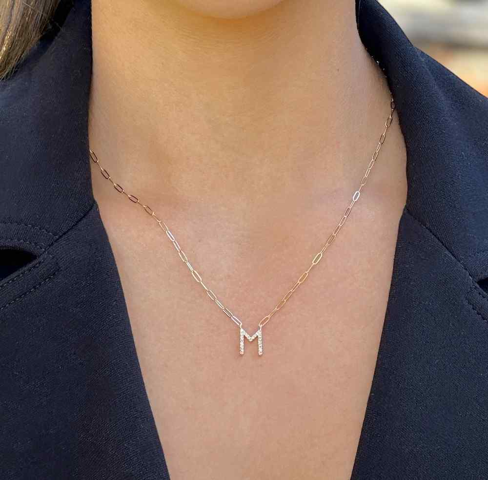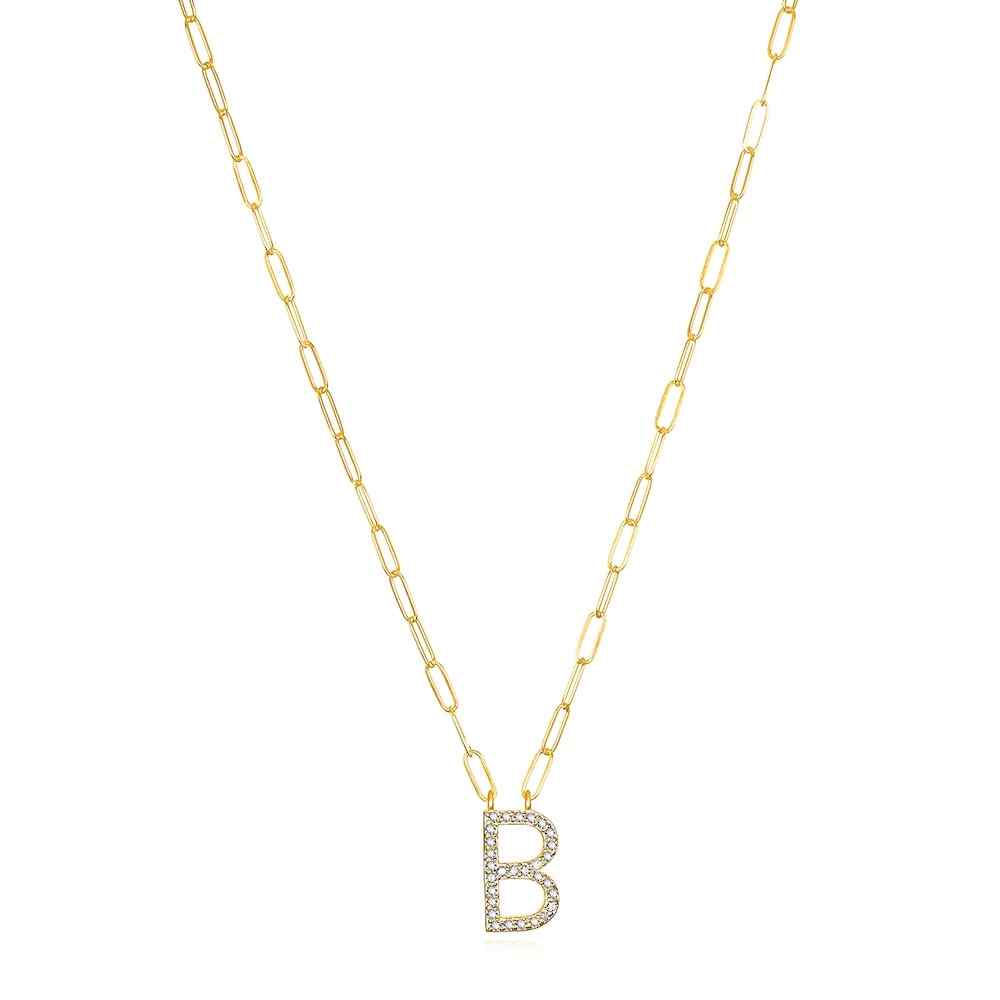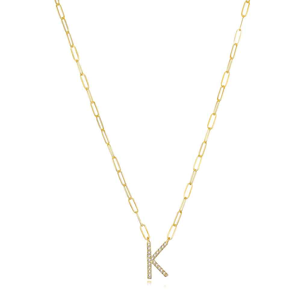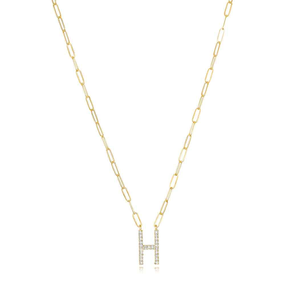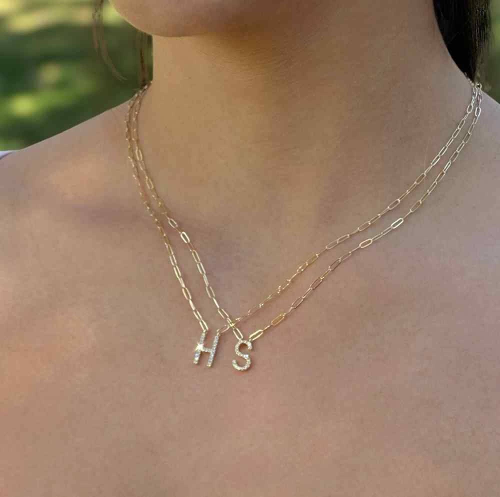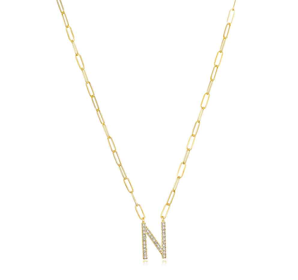 The quintessential gift for yourself or someone special, this diamond initial necklace is designed to impress! Luxuriously sized uppercase letters sparkle with pavé set genuine diamonds. Handcrafted in rich 14k gold-dipped sterling silver with an adjustable length for seamless layering with other necklaces and a custom fit.