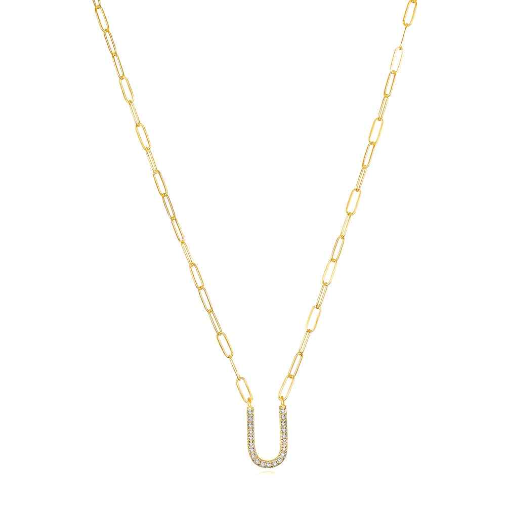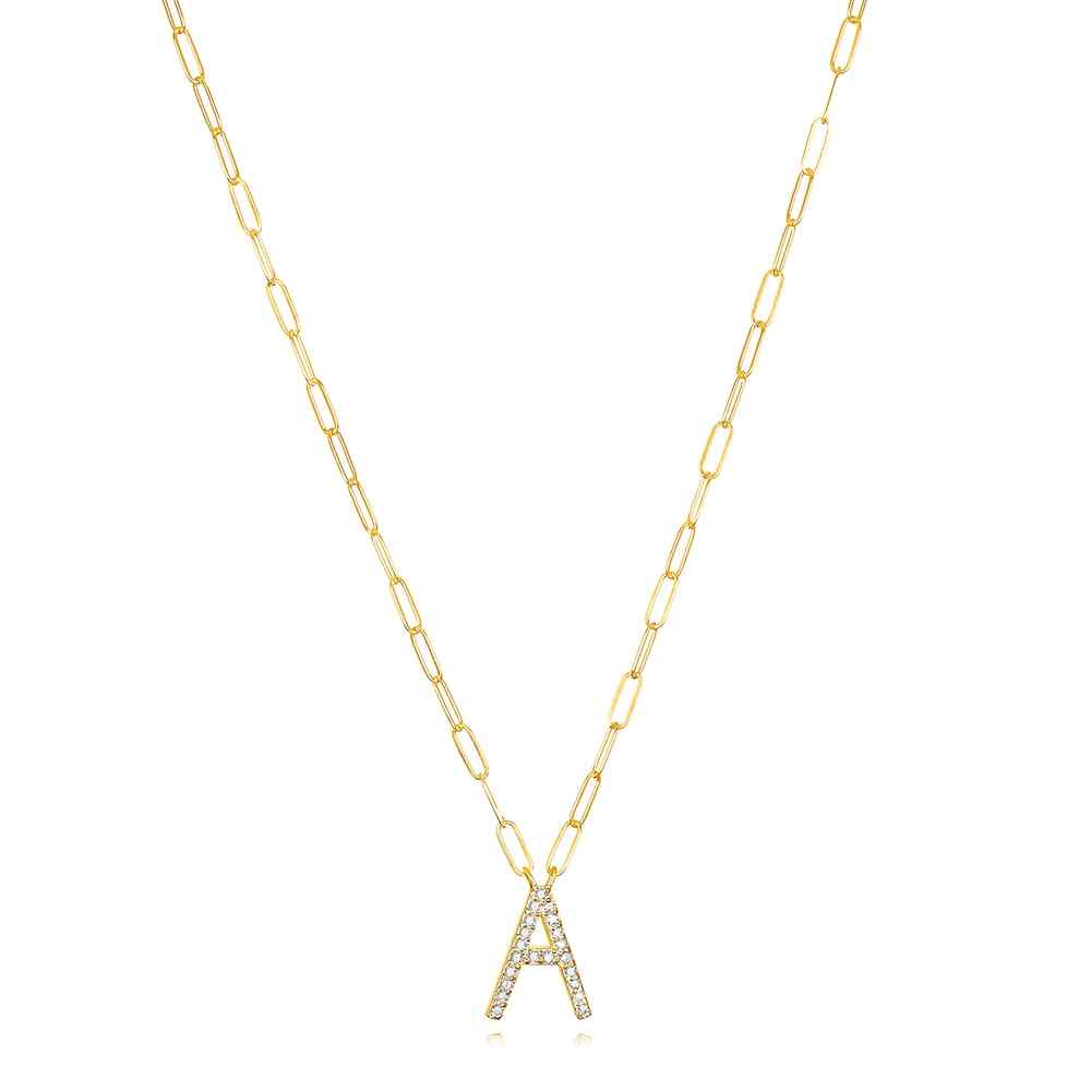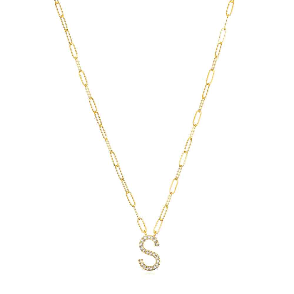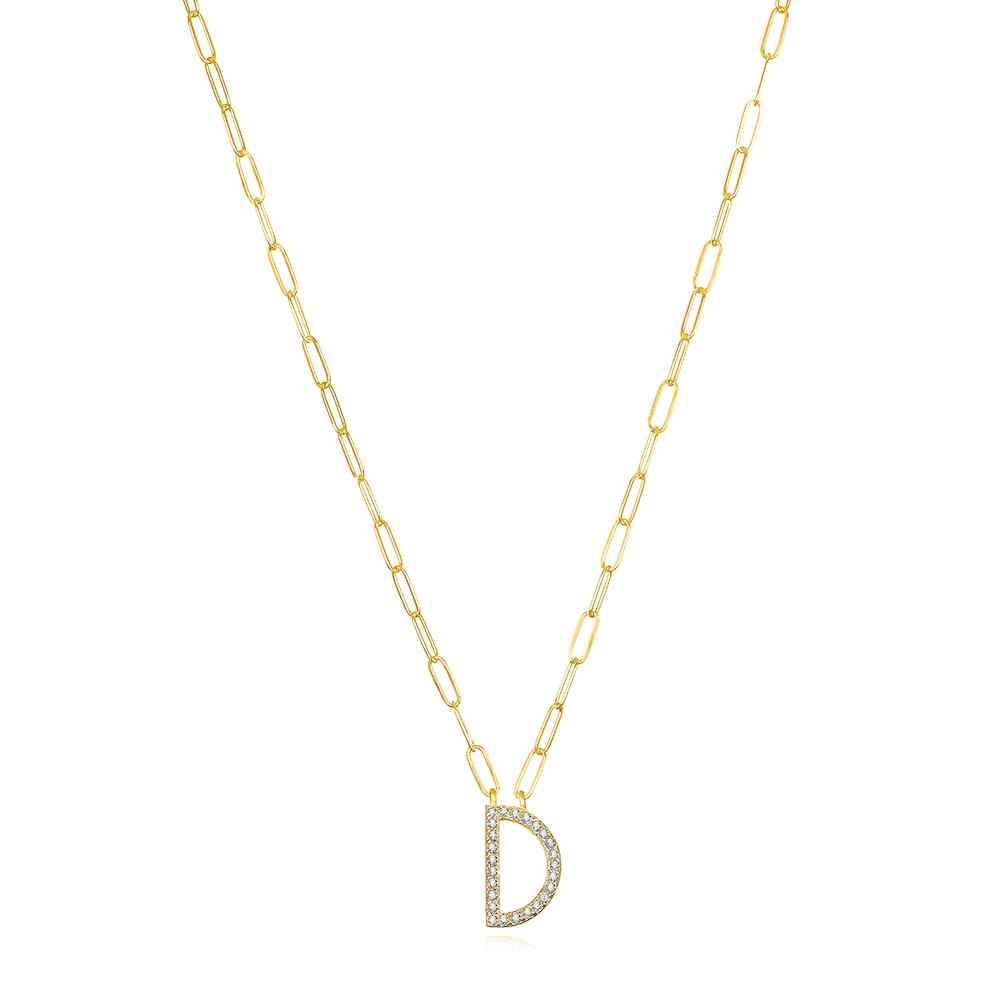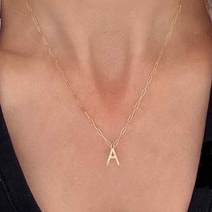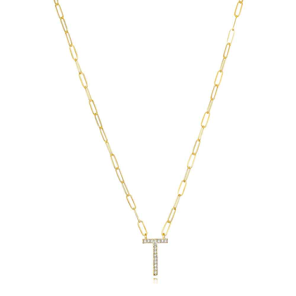 The quintessential gift for yourself or someone special, this diamond initial necklace is designed to impress! Luxuriously sized uppercase letters sparkle with pavé set genuine diamonds. Handcrafted in rich 14k gold-dipped sterling silver with an adjustable length for seamless layering with other necklaces and a custom fit.