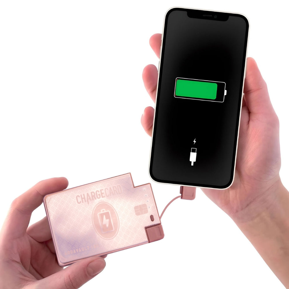 • The ChargeCard is tested to hold a charge for up to one year, but the charge will diminish over time. It’s recommended to charge it at least once per month so you always have close to a full 100% charge