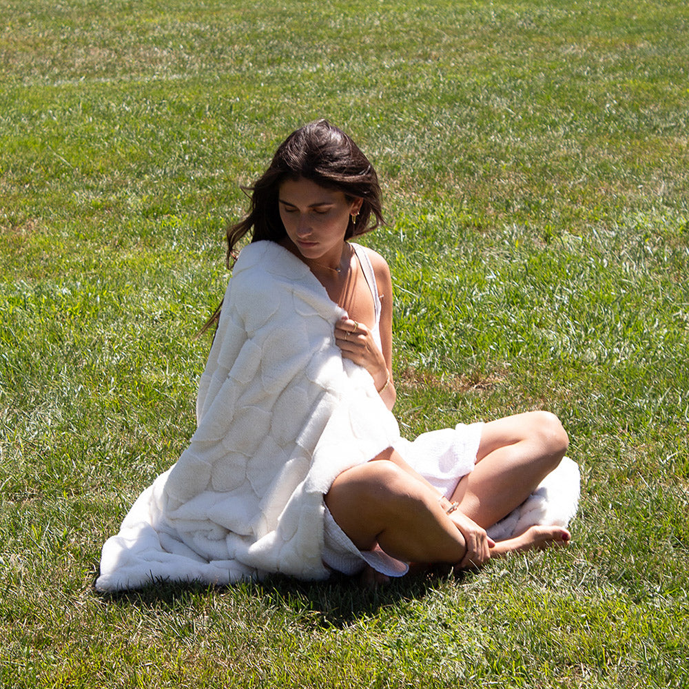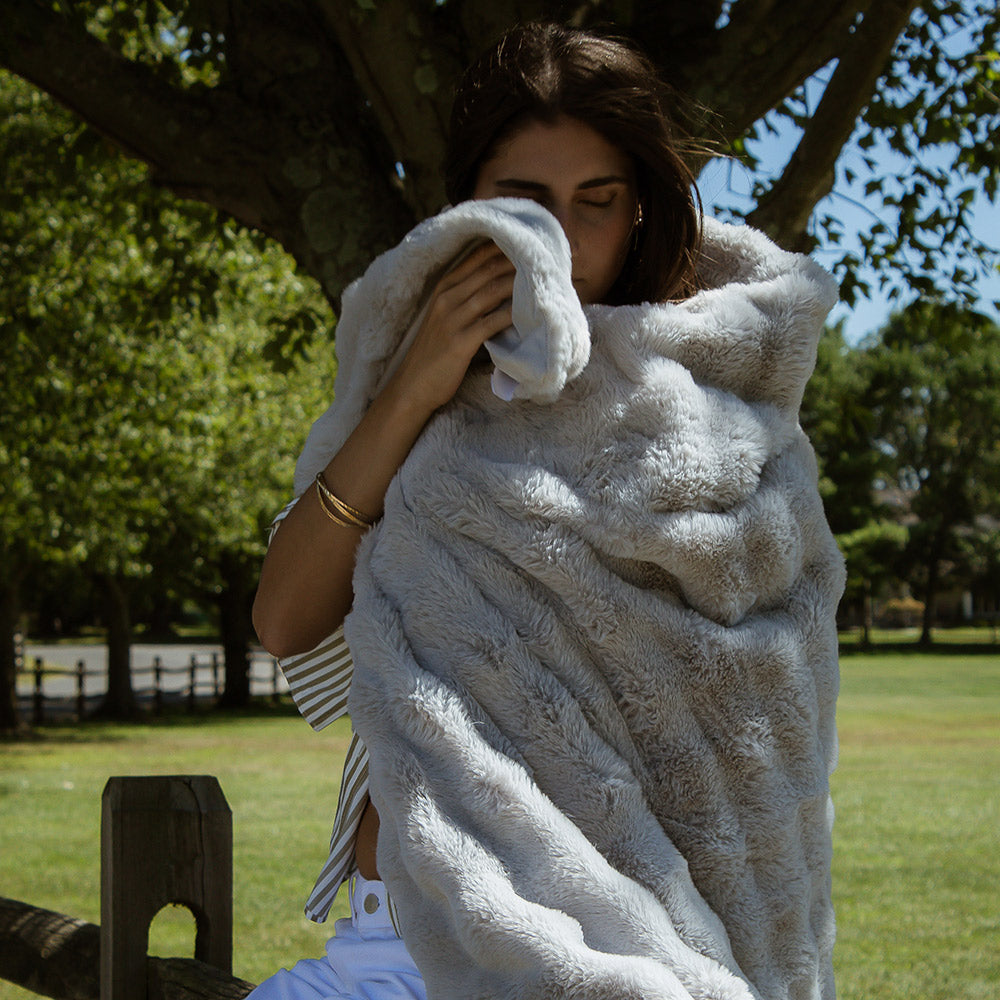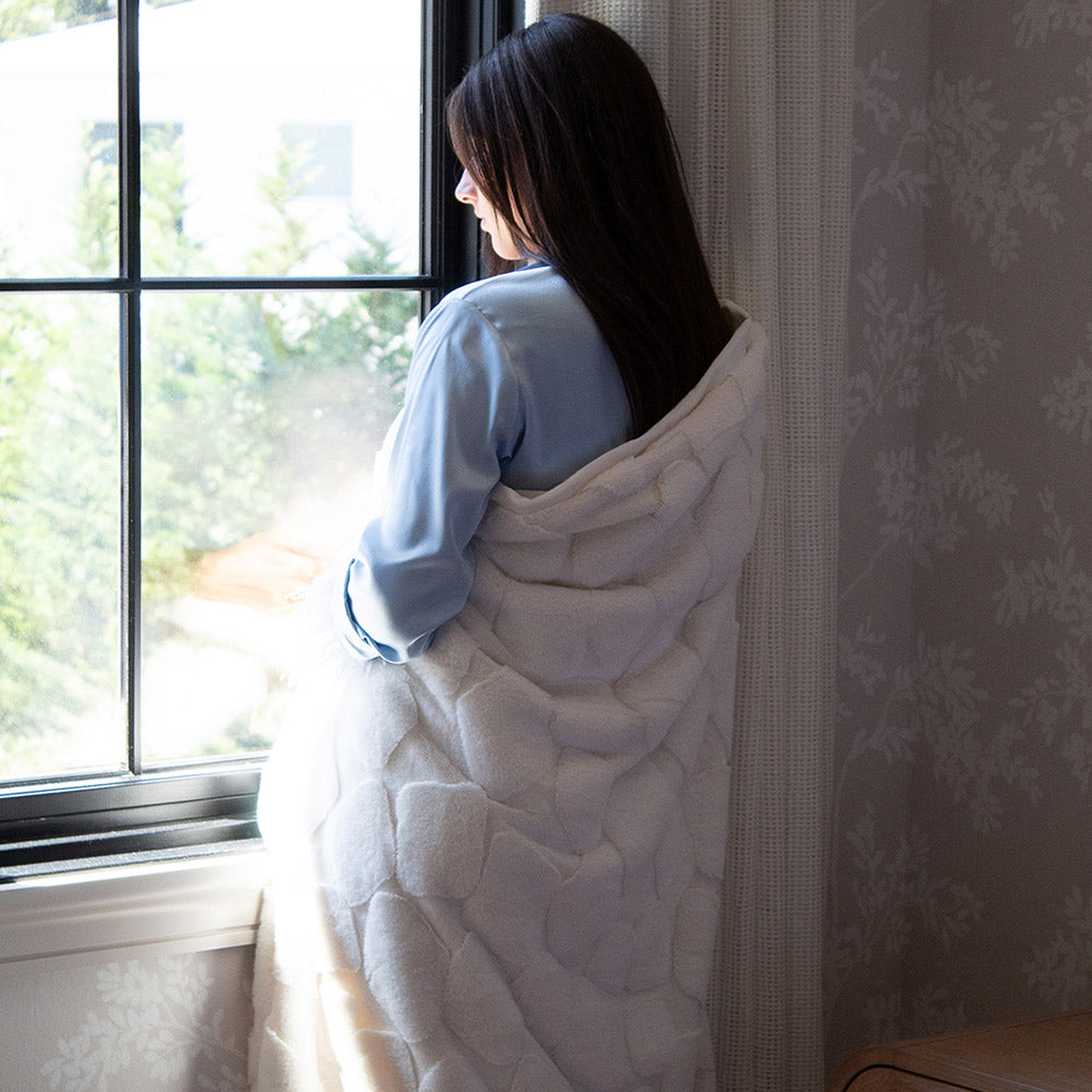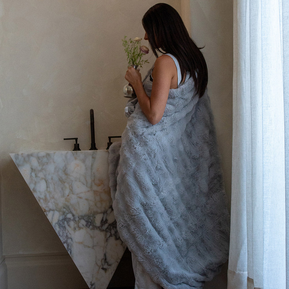 Indulge your senses with a blanket designed to delight. This heavy faux fur blanket combines ultimate softness with a calming touch of luxury. Infused with the soothing scent of jasmine, it creates a spa-like experience every time you cuddle up.