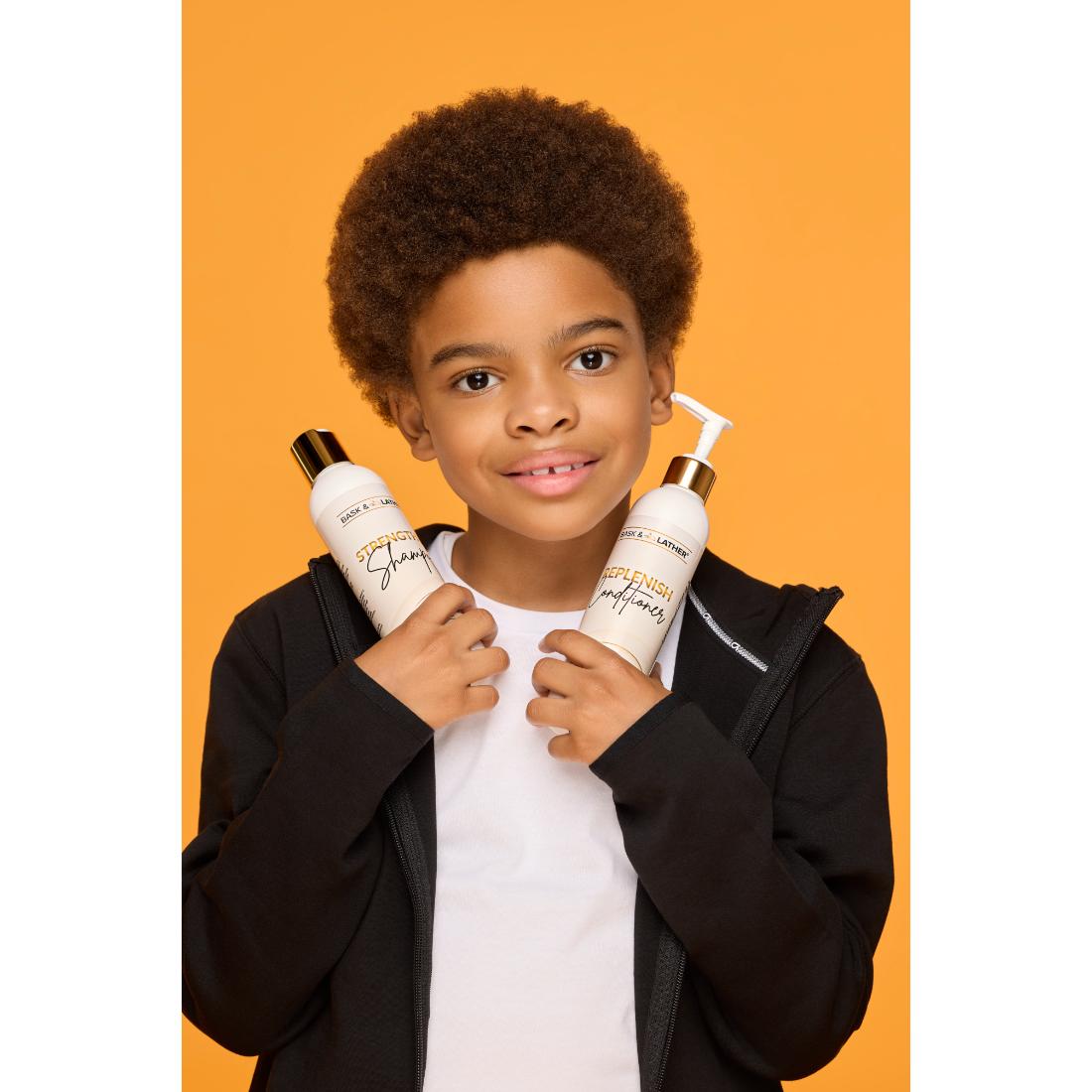 • Apply Strengthen Shampoo to wet hair, massage into scalp, and rinse