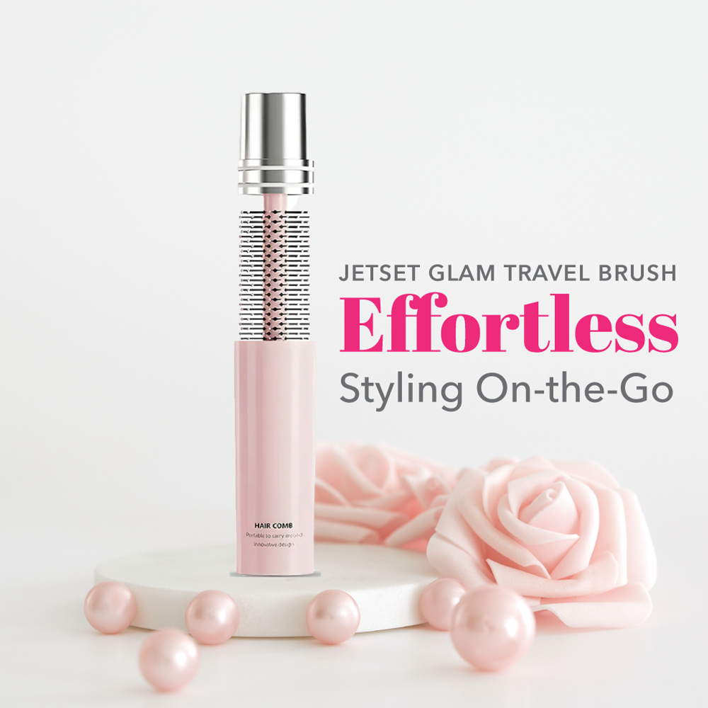 The JetSetGlam LuxeLocks Travel Brush is a compact round styling brush designed to keep hair smooth, detangled, and polished wherever the day takes the user. Its travel-friendly size, heat-resistant build, and ergonomic design make it a reliable tool for effortless styling on the go. With advanced bristles that minimize frizz and support quick touch-ups, it offers a convenient way to maintain beautifully textured hair anytime.