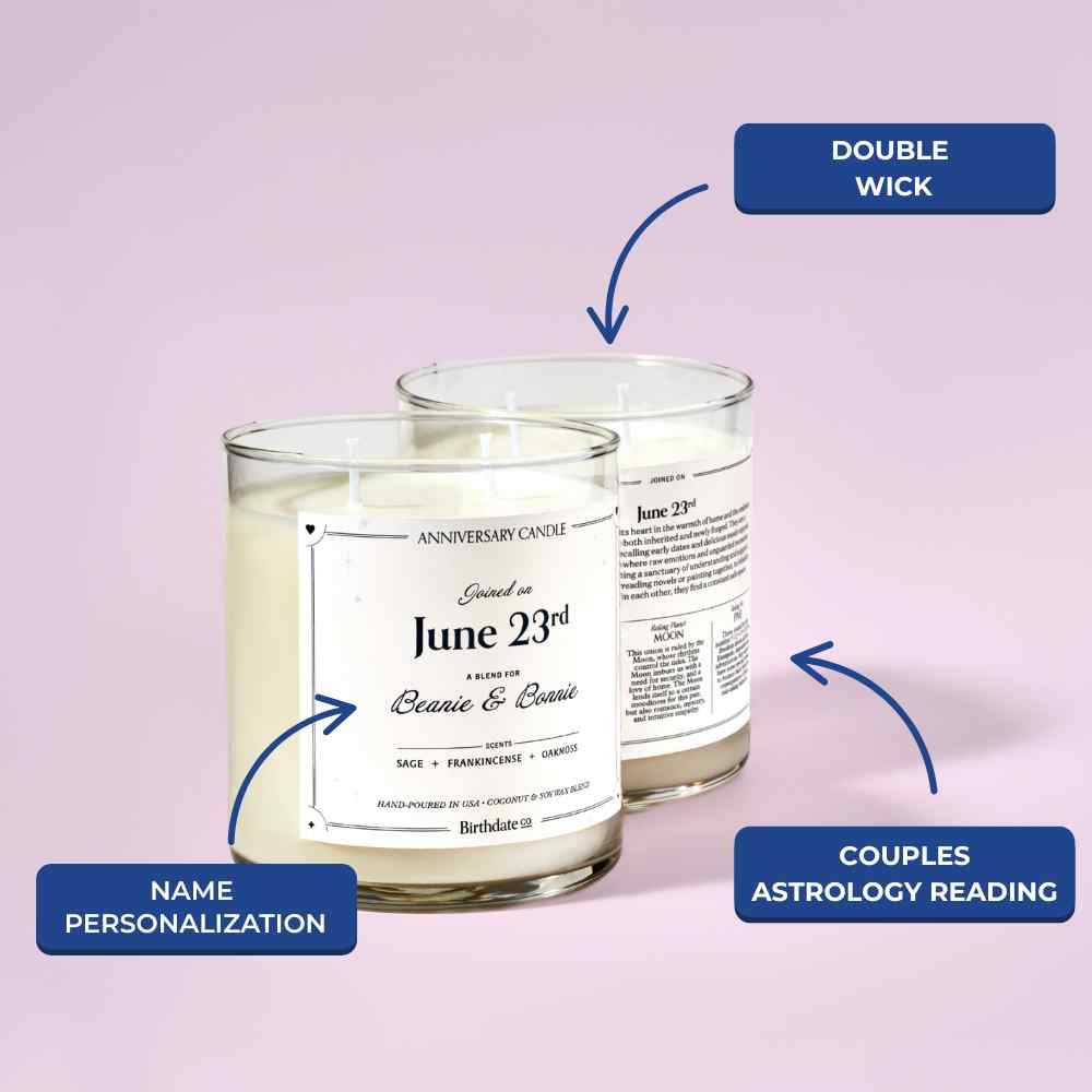 Honor two souls united in love with this enchanting Anniversary Candle. Meticulously crafted to mark the unique connection between partners, this candle intertwines astrology, tarot, and numerology to create a harmonious blend of guidance and fragrance.
