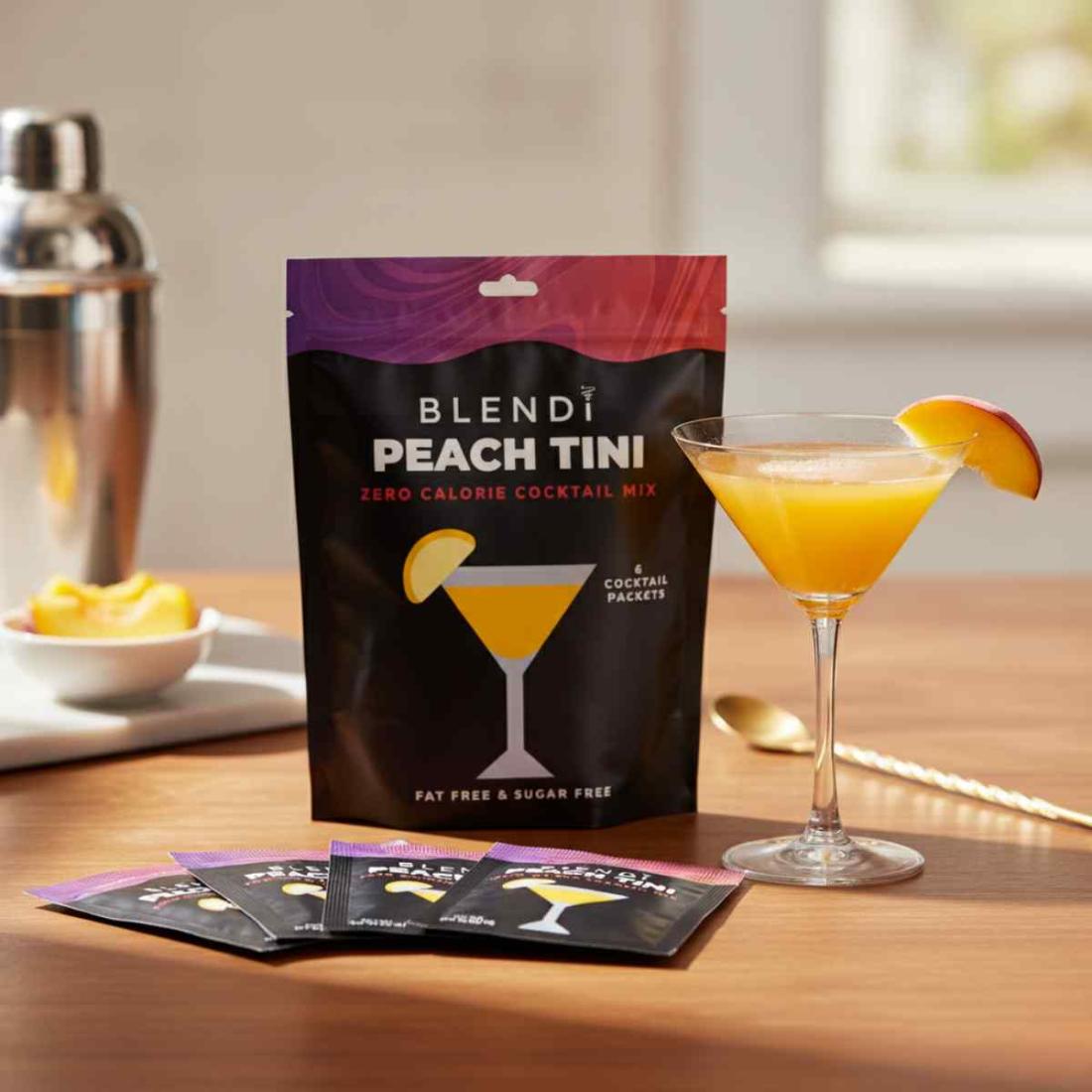 • Peach Tini: Maltodextrin, Sucralose, Citric Acid, less than 2% Natural and Artificial Flavors, Artificial Color, Yellow 5, 6, Red 40