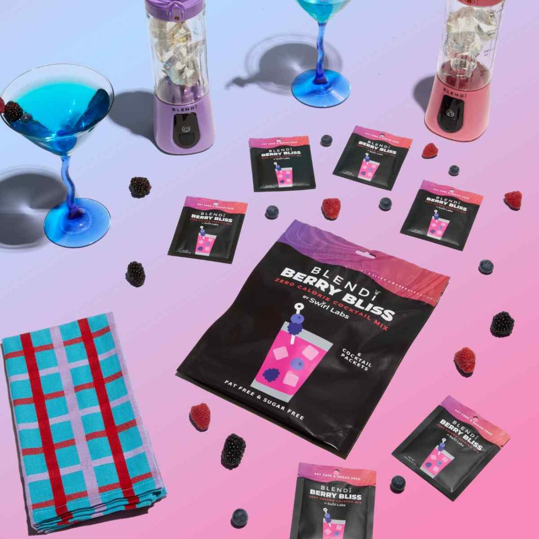 • Pour one packet of cocktail mix into a glass, or for best results, use your Portable Blender Pro+ (sold separately)