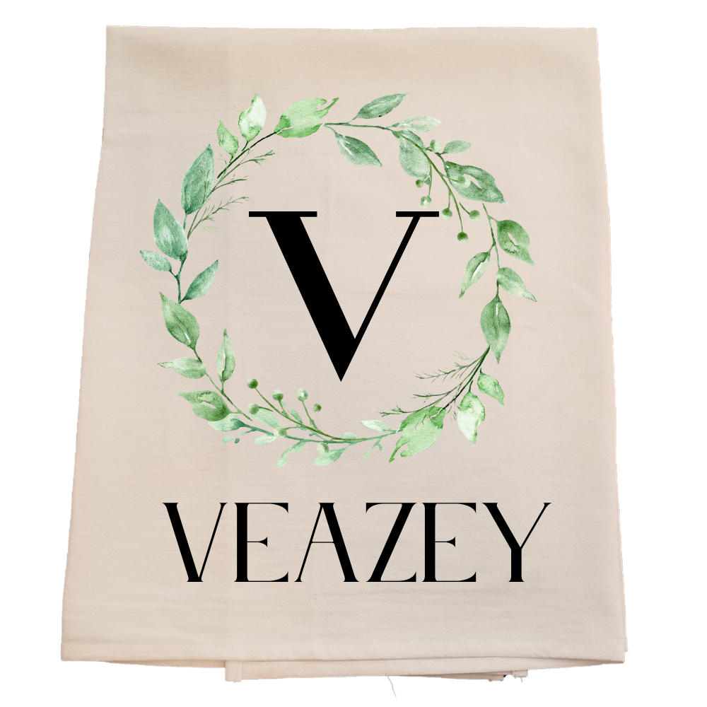 Initial Wreath Personalized Flour Sack Tea Towel