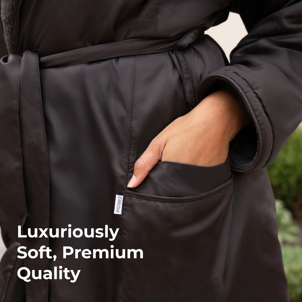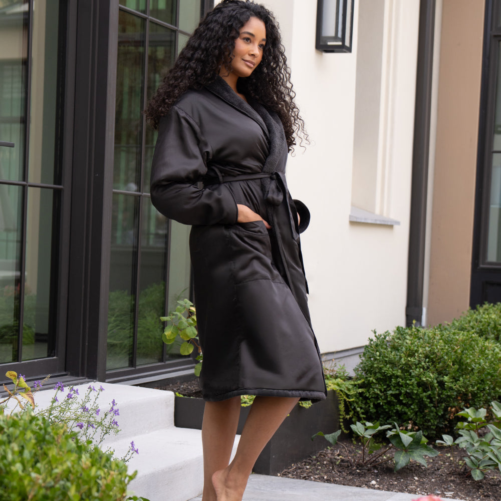 Introducing the Spa Robe, designed to put a vacation-spa vibe into your everyday life. This ultra-posh robe features a luxuriously soft sateen exterior and sumptuously plush interior, delivering the ultimate robe for all your comfy spa days at home.