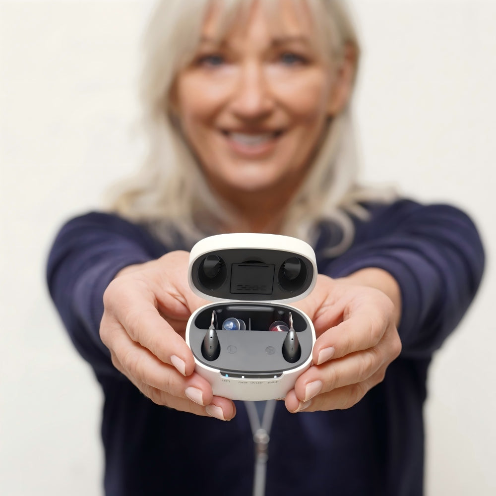 Beacon is a receiver-in-canal OTC hearing aid that gives you crystal-clear sound with advanced noise reduction, so conversations are easy to follow anywhere. It features Bluetooth streaming and a smartphone app, letting you take calls, listen to music, and adjust your hearing settings easily. Designed for comfort and convenience, Beacon is rechargeable, customizable with self-fitting technology, and provides all-day hearing support for a truly modern hearing experience.