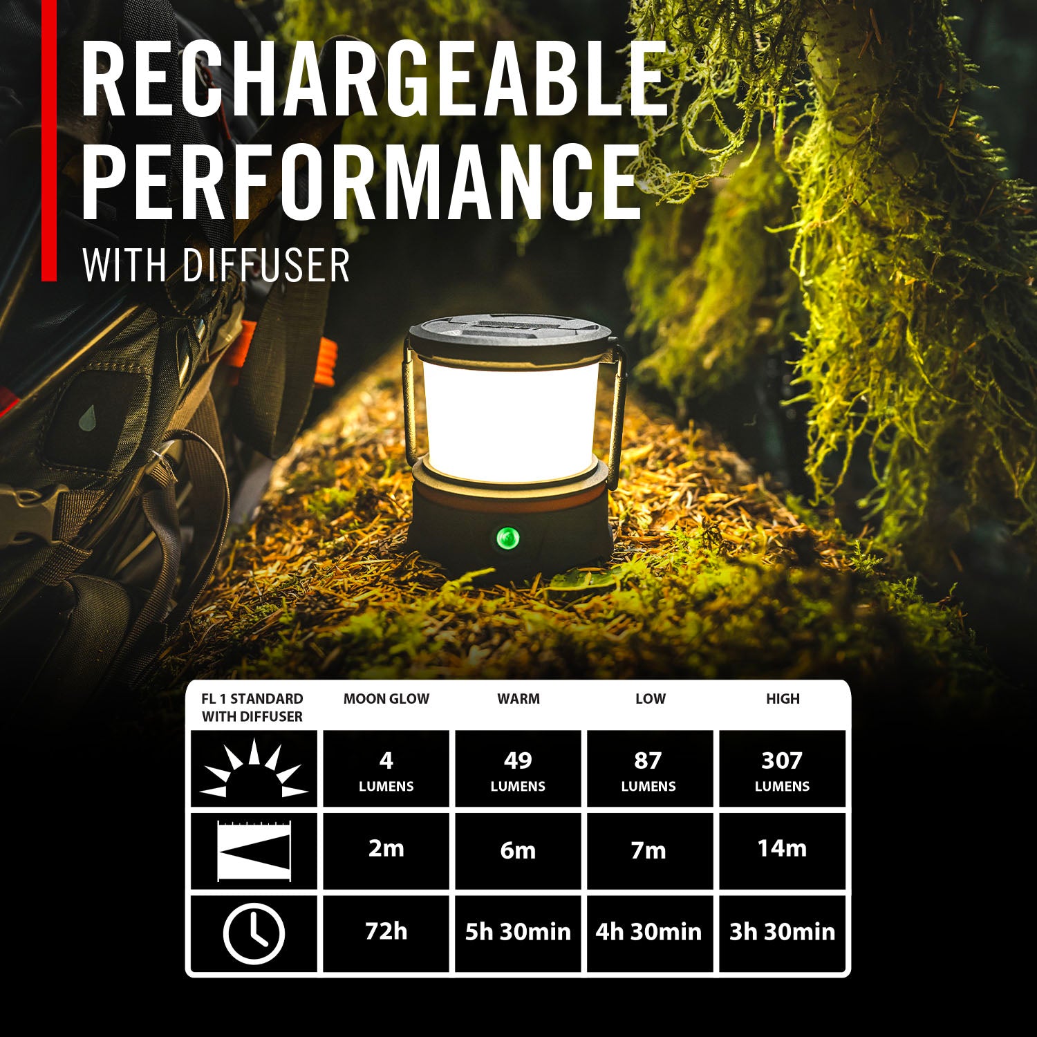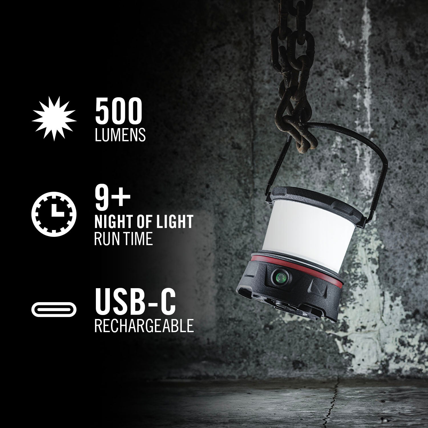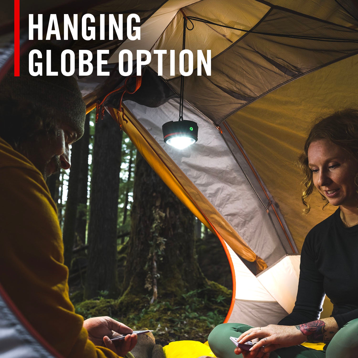 Get big light from a compact lantern. At just over 4” tall, the weight-saving EAL10R rechargeable lantern delivers versatile lighting in a packable format about half the height of a traditional lantern. Room-filling light shines in six modes—MoonGlow™, warm, low, high, red, and red flashing—to give you options, whether you need a 500-lumen flood around the picnic table or a softer, ambient effect in the tent.