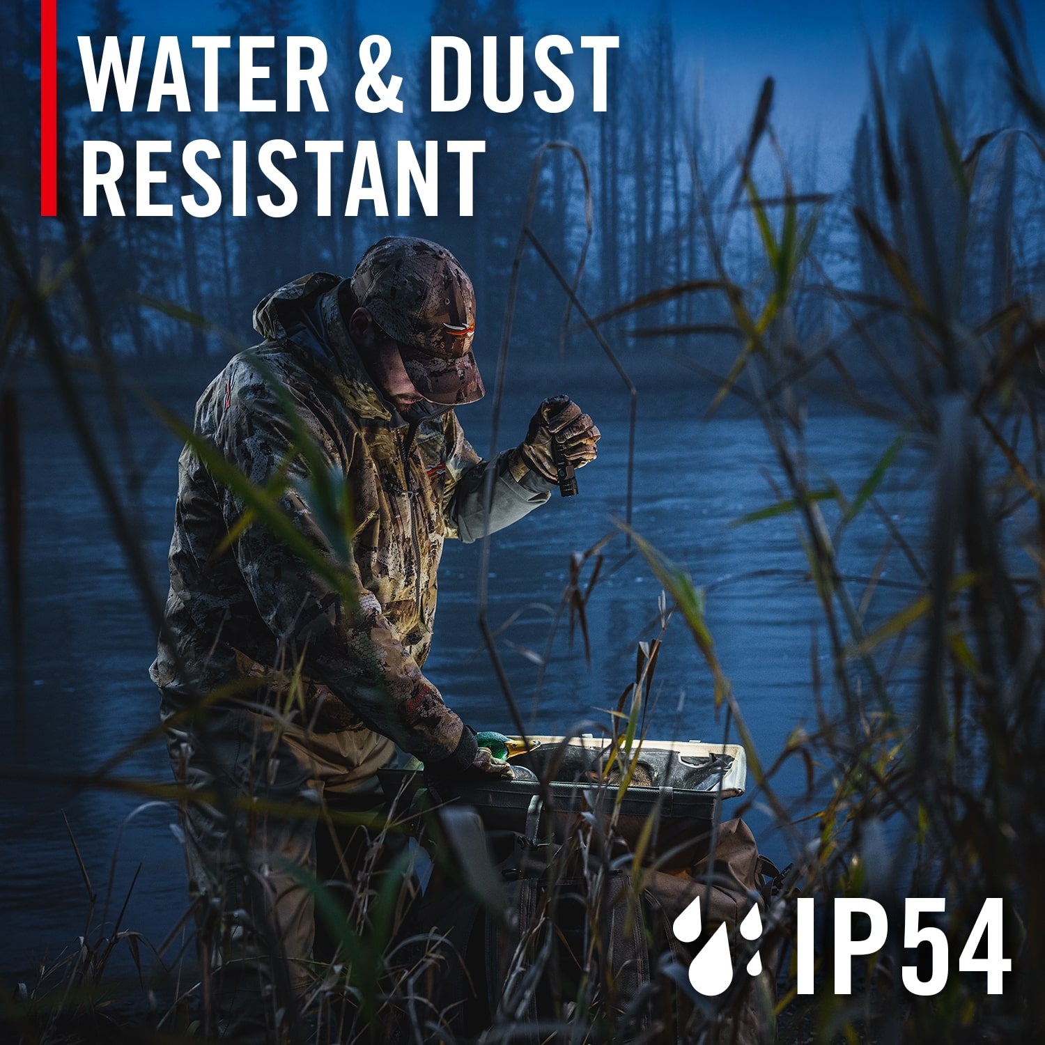 • Crafted from tough, lightweight aluminum with a machined grip texture, IP54-rated for water and dust resistance