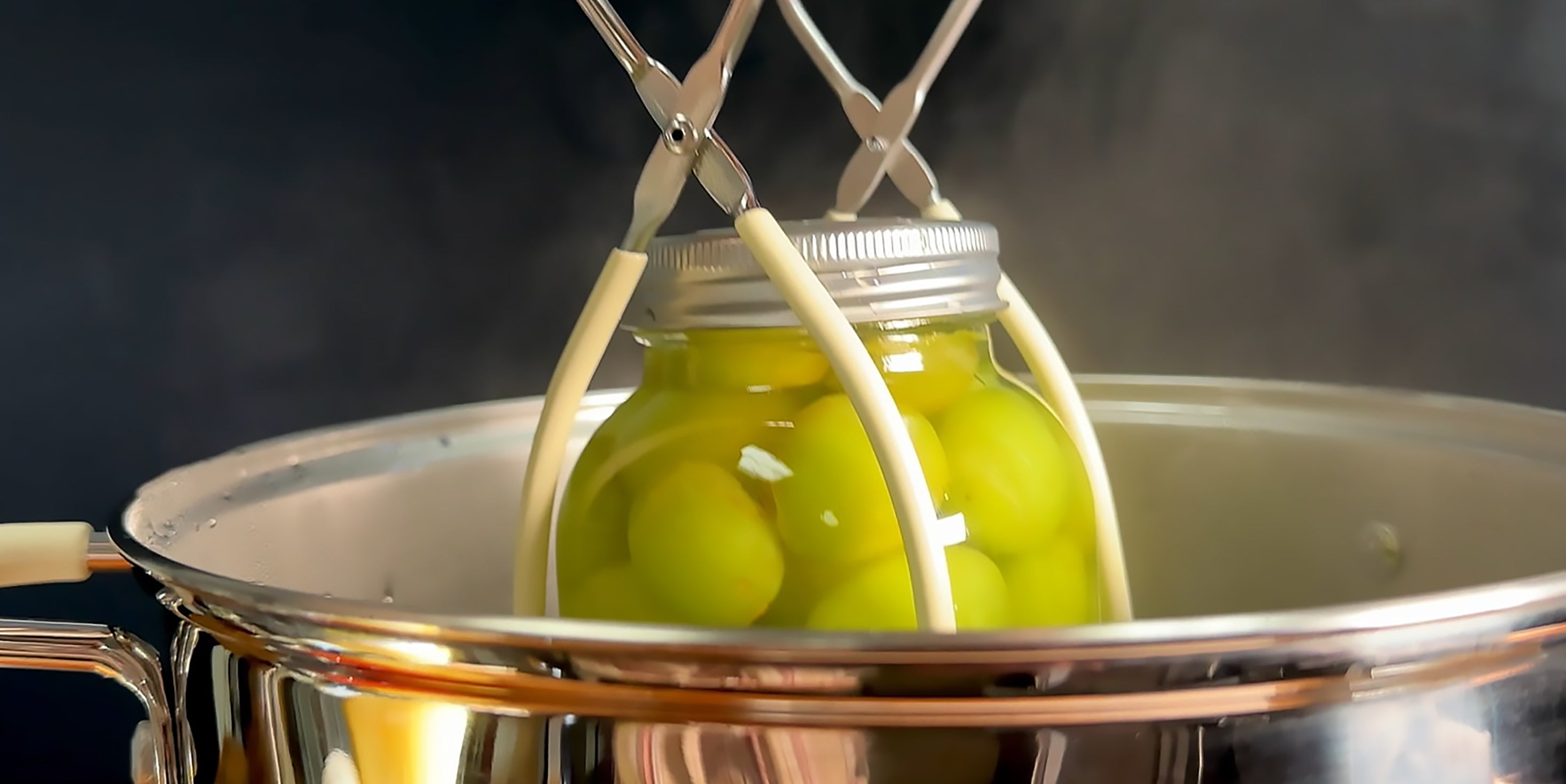 Glass lid is vented and tempered, so you can visually gauge when your canning is complete