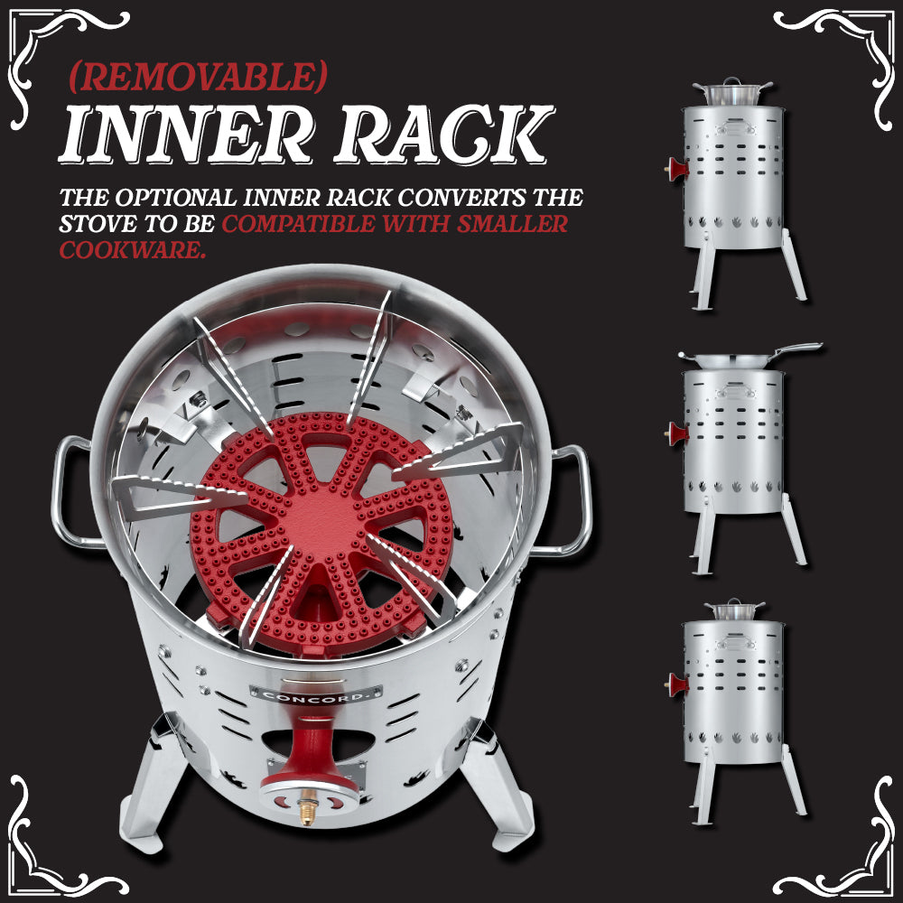 • Removable inner rack for smaller cookware, such as stock pots, woks, tea kettles, and more