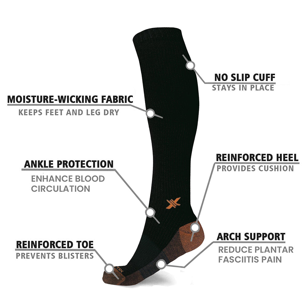 • Includes one (1) pair of Copper-Infused High Performance Knee-High Compression Socks in size and color of your choice