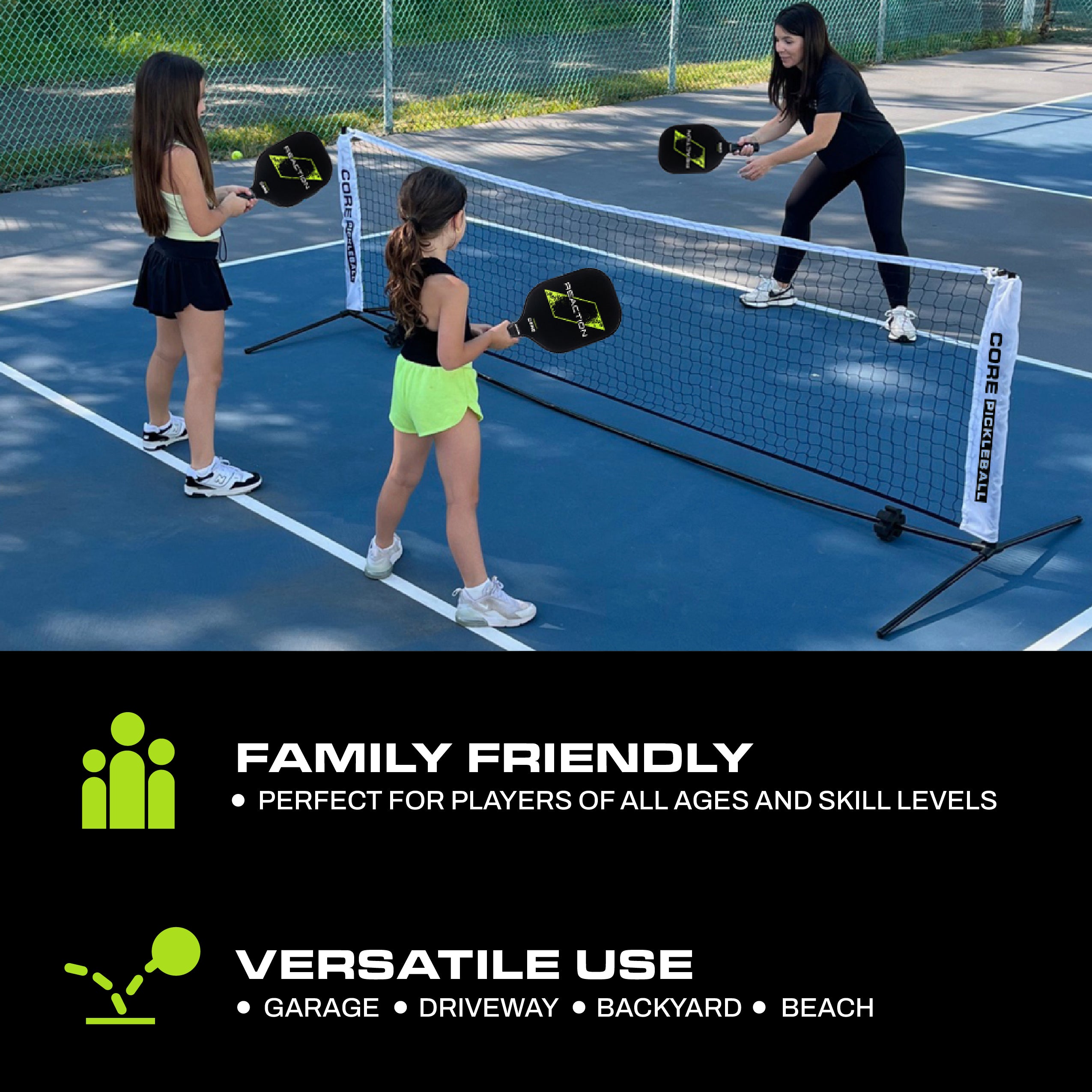 The Dink Trainer Mini Pickleball Net turns any driveway or backyard into a pickleball training ground. Ideal for family fun and practicing dink shots, it’s durable, portable, and quick to set up.