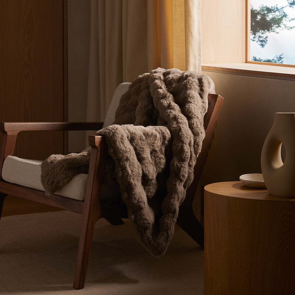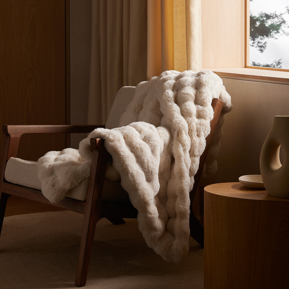 Lose yourself in luxury with the Bubble Cuddle Blanket. It offers a combination of comfort and style with its distinctively textured bubble design intricately woven from ultra-soft fibers. This faux fur blanket makes the ideal centerpiece for your living room or bedroom.