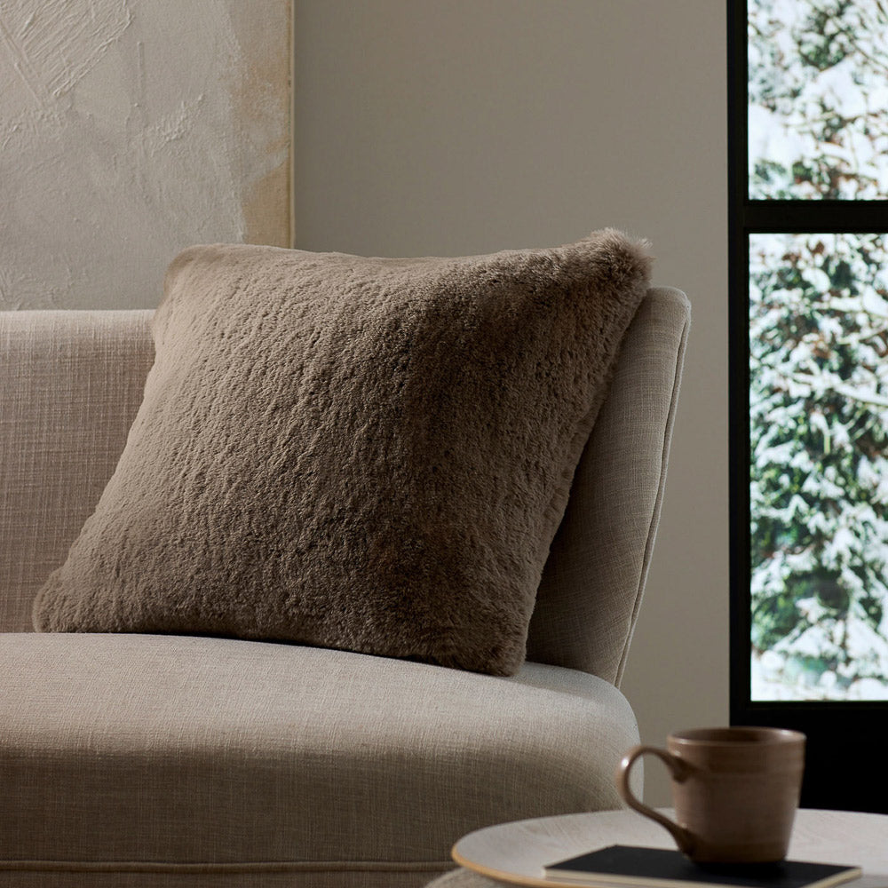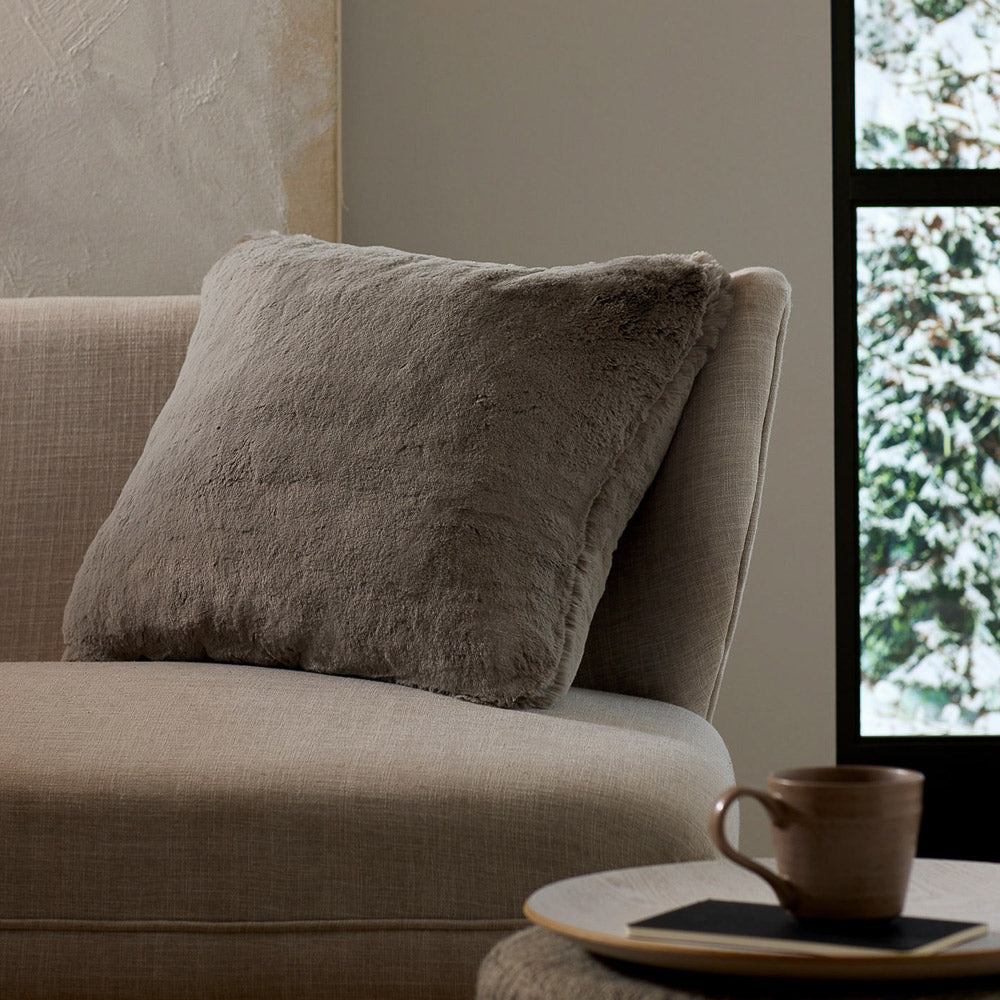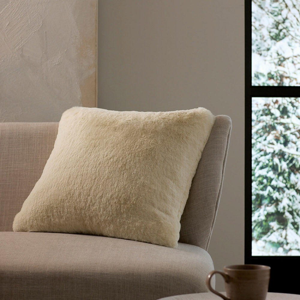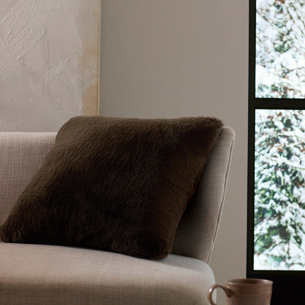 Crafted for those who love a touch of luxury, the Cuddle Pillow features an ultra-plush pile that’s irresistibly soft. Its faux-fur-like texture and knife-edge finish on both sides add a layer of sophistication, making it the ideal addition to your space. Prop it on your sofa, favorite chair, or your bed with its cozy yet refined look.