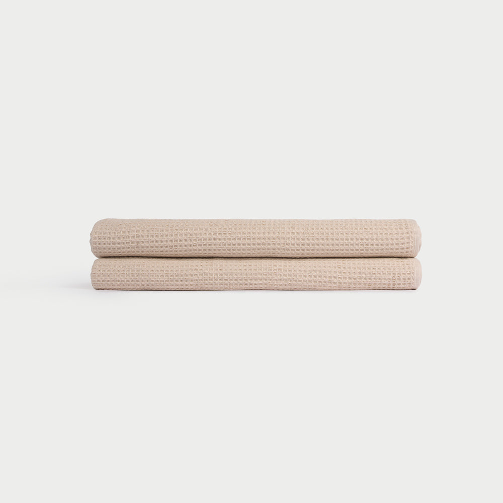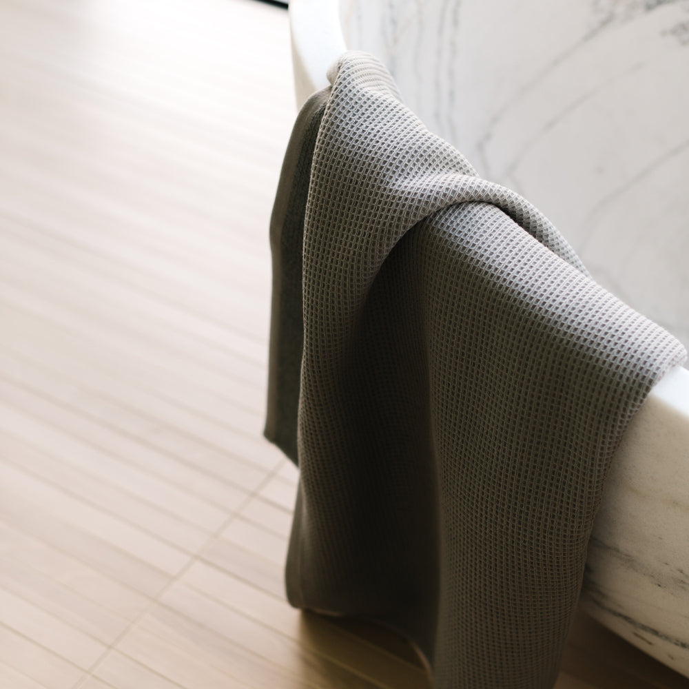 The dual-sided Waffle Bath Towels balance the modern texture of a mini waffle weave with the plush softness of ribbed terry. Awaken your bathroom aesthetic with the decorative waffle side, while drying off with the lightweight yet ultra-absorbent terry.