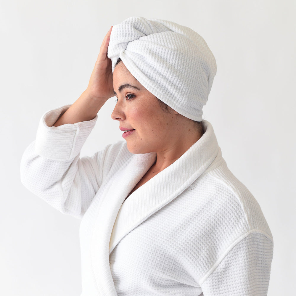 Elevate your post-shower routine with the Waffle Hair Towel. This hair wrap helps dry your hair and keeps it out of your face while getting ready, making it a convenient companion for your mornings.