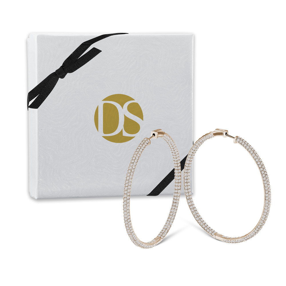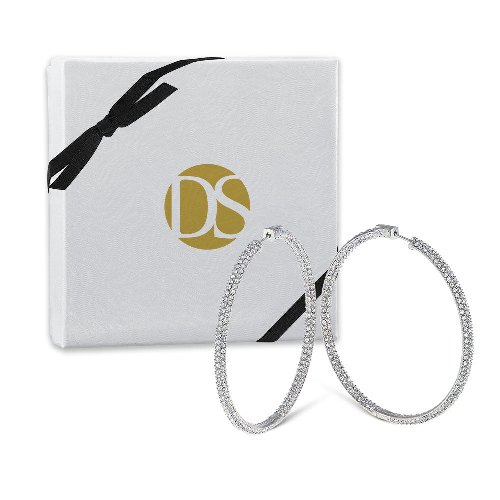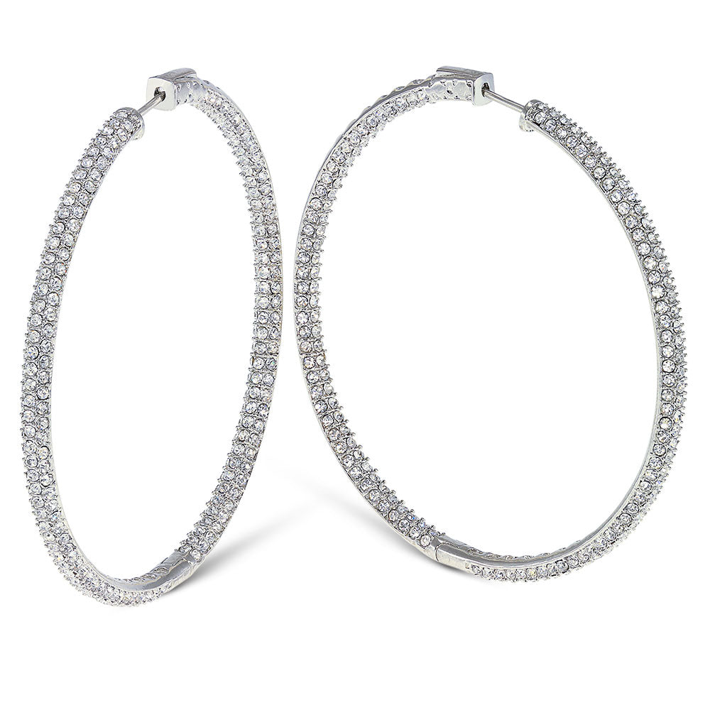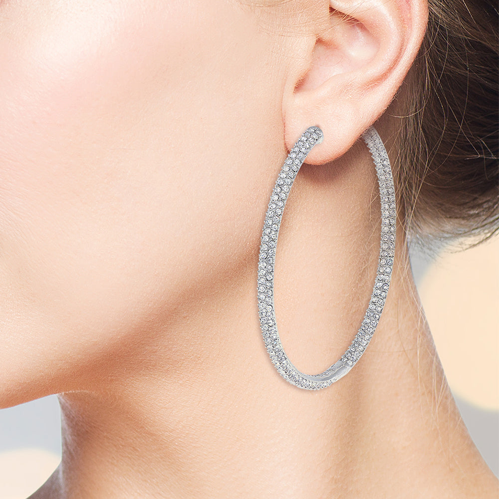 With a classic, wear anytime and anywhere design, The Grand Inside-Outside Hoops make a great addition to your jewelry collection. These ultra-chic earrings are paved inside and out with white cubic zirconia stones for a sparkle that feels like second skin.
