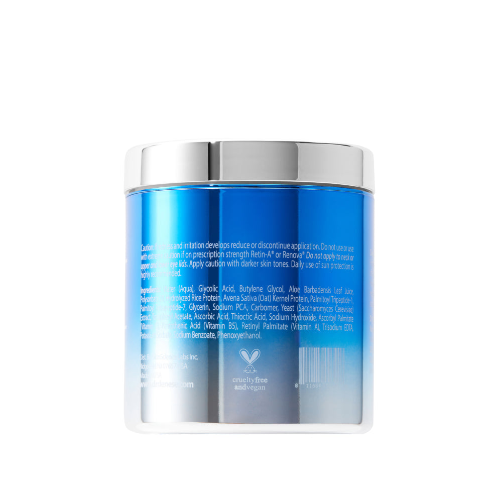 These pads are designed to exfoliate away dead skin cells and facilitate the rise of fresh skin cells to the surface. Each pad is made to deliver the ideal dose of daily exfoliation, infused with innovative ingredients like peptides and high percentage glycolic acid to address lines, wrinkles, uneven skin tone, and enlarged pores.
