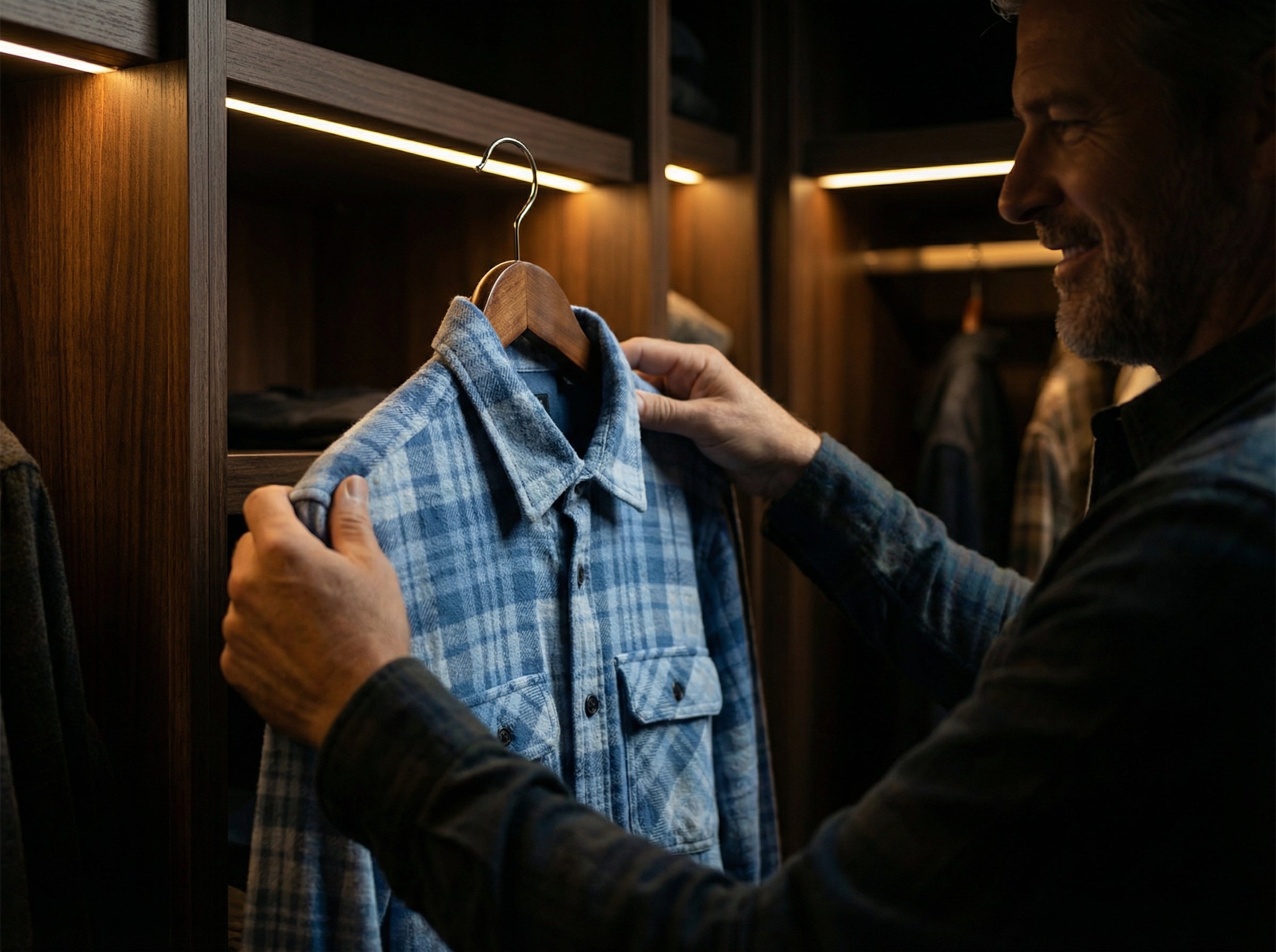 The world’s fastest flannel. Fast on, fast off, fast hanging. Magnetic buttons for the win. Soft and stretchy fabric, built to be thrown-on at home. For when you’re not in a robe mood, whether you’re working from home, making breakfast, taking out the trash, walking the dog, getting coffee, or running quick errands.