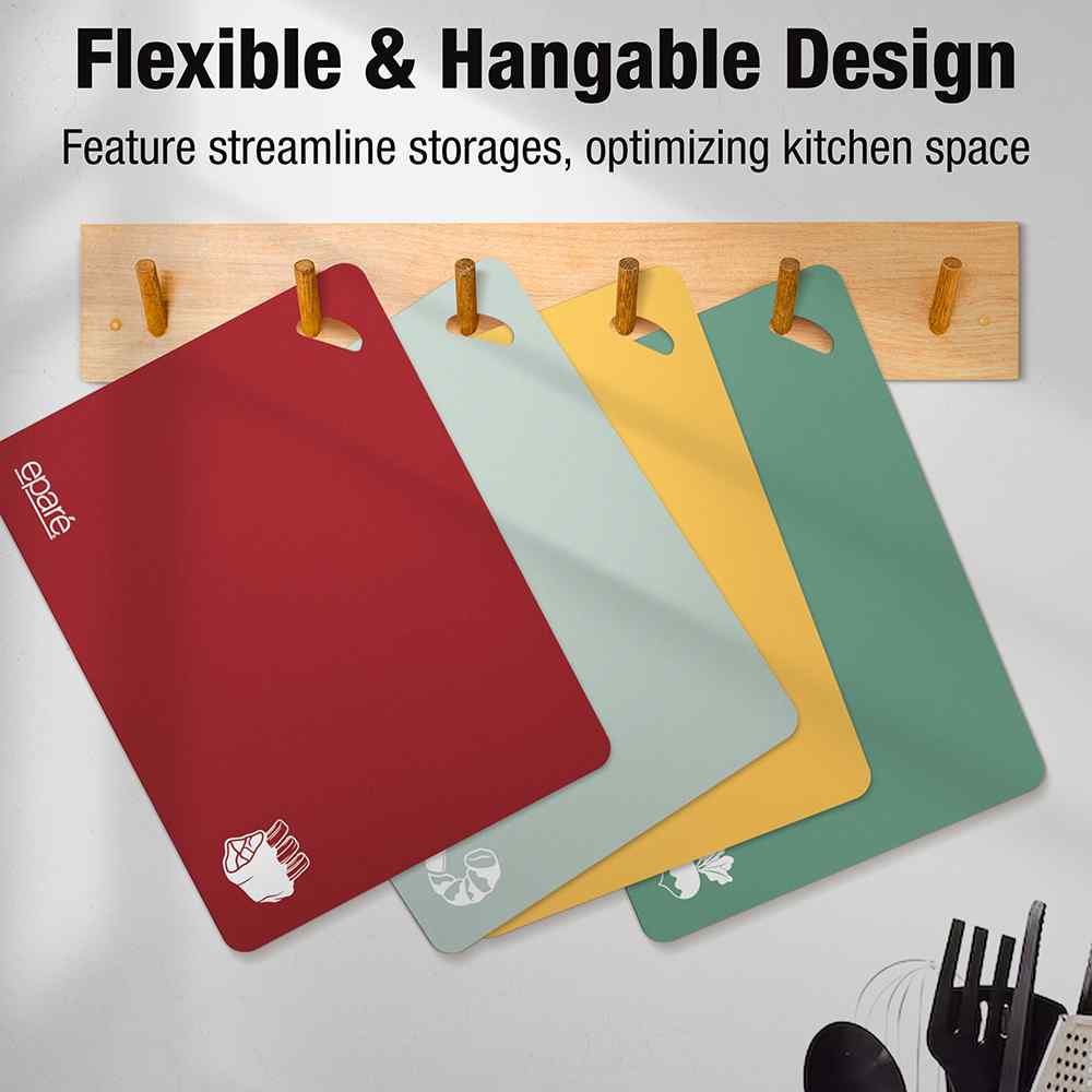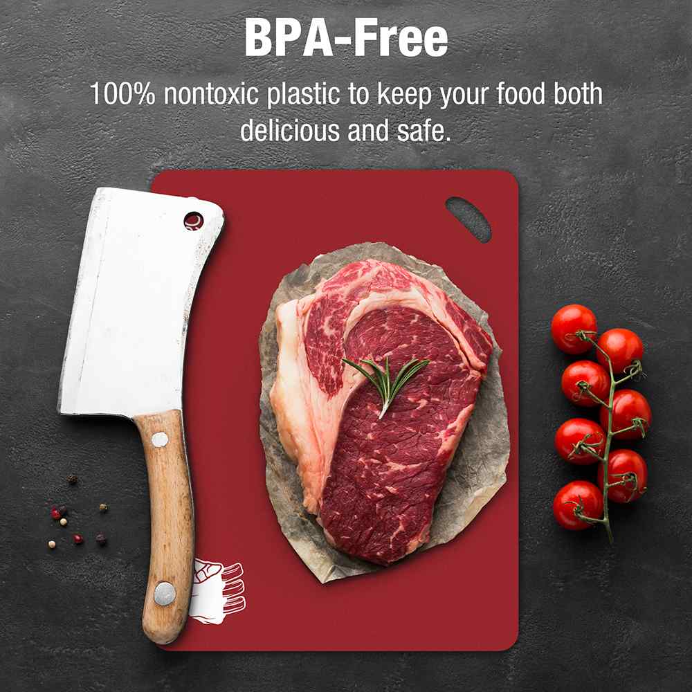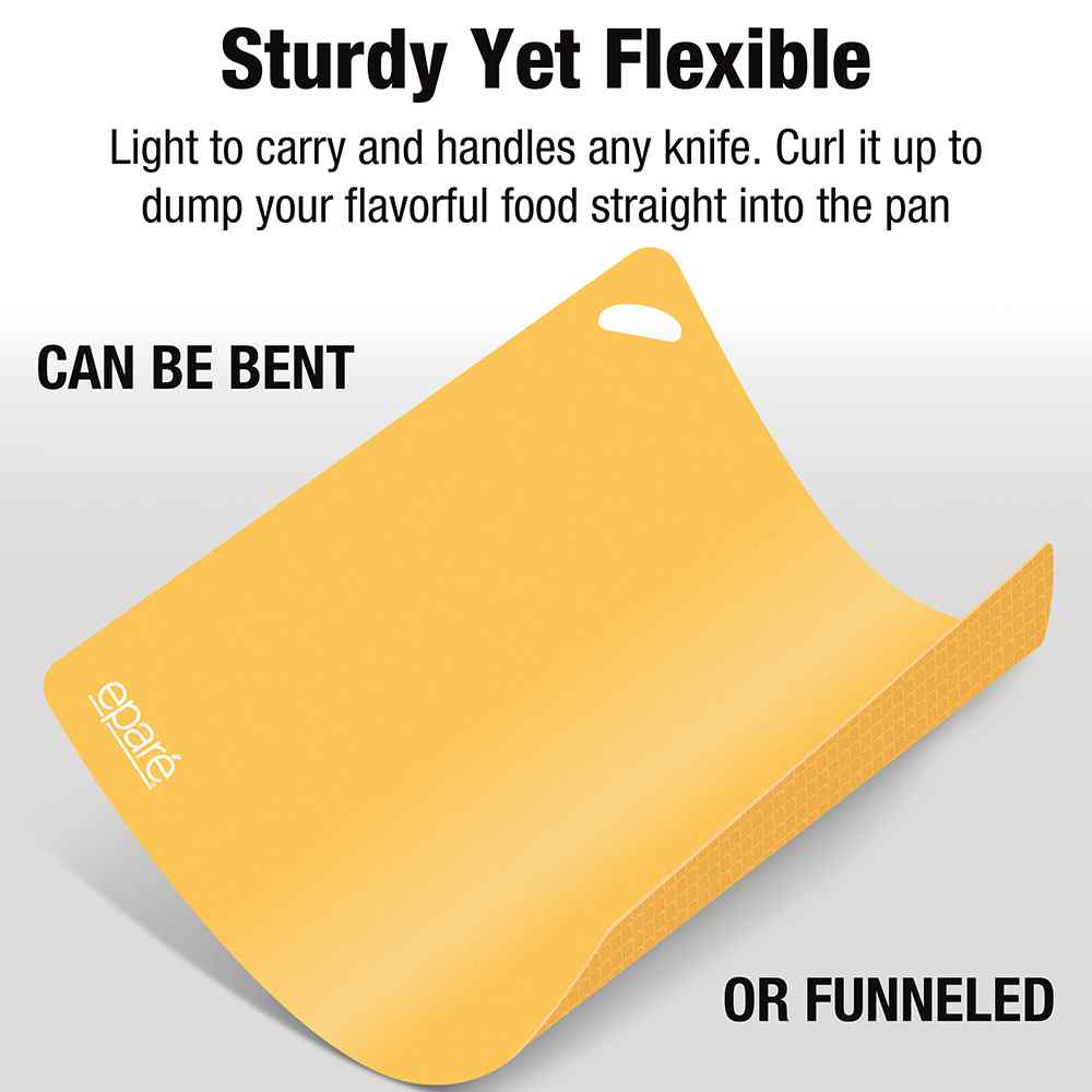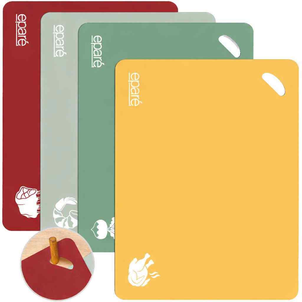 Prep your meals with confidence and ease using this set of color-coded cutting mats. Designed for safe, hygienic food preparation, each BPA-free mat is labeled by color to help prevent cross-contamination between meats, seafood, vegetables, and fruits. The textured, waffle-grip bottom prevents slipping on countertops, while the flexible, non-stick surface makes it easy to transfer chopped ingredients straight into the pan.