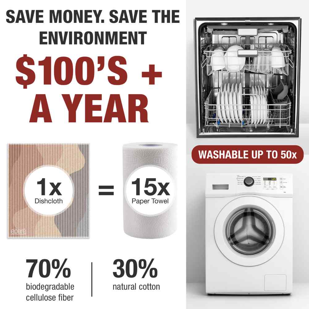 A dishcloth designed to save you money and be kind to the environment that’s also durable, dishwasher-friendly, and easy to care for. It can handle both dishwashing and spill cleanup while eliminating the need for endless rolls of paper towels. Just squeeze it dry and it will resist the growth of odor-causing bacteria. Cute and convenient, it’s a win for you and the environment!