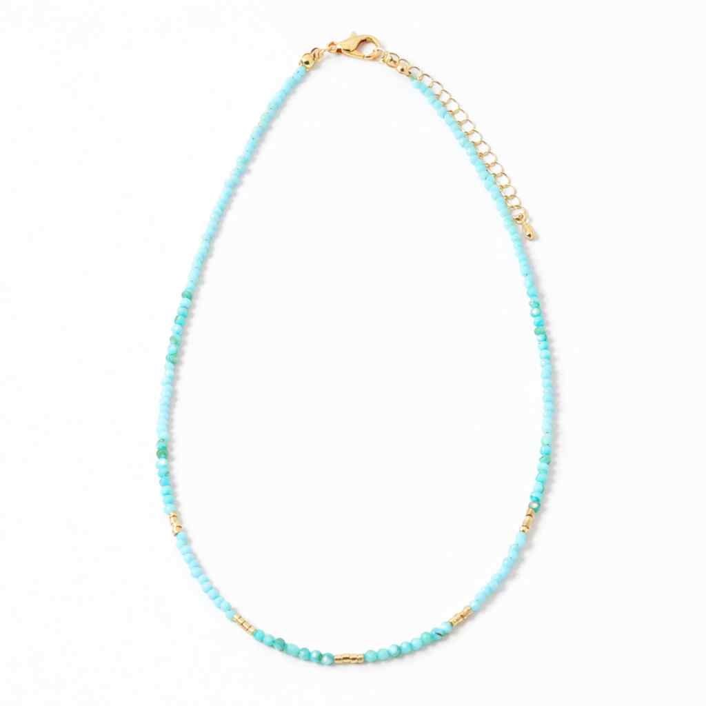 The most gorgeous shade of blue with tiny gold beads throughout the necklace! This color is absolutely gorgeous and looks ideal for everyday wear.