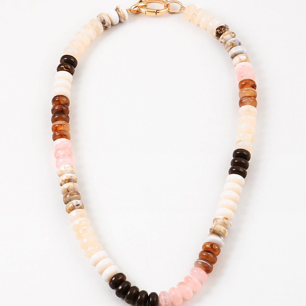 This oversized necklace boasts gorgeous resin beads in multiple colors. It also comes with a carabiner, making it easy to add a charm or wear it without. The necklace can be worn with the toggle in the front or the back.