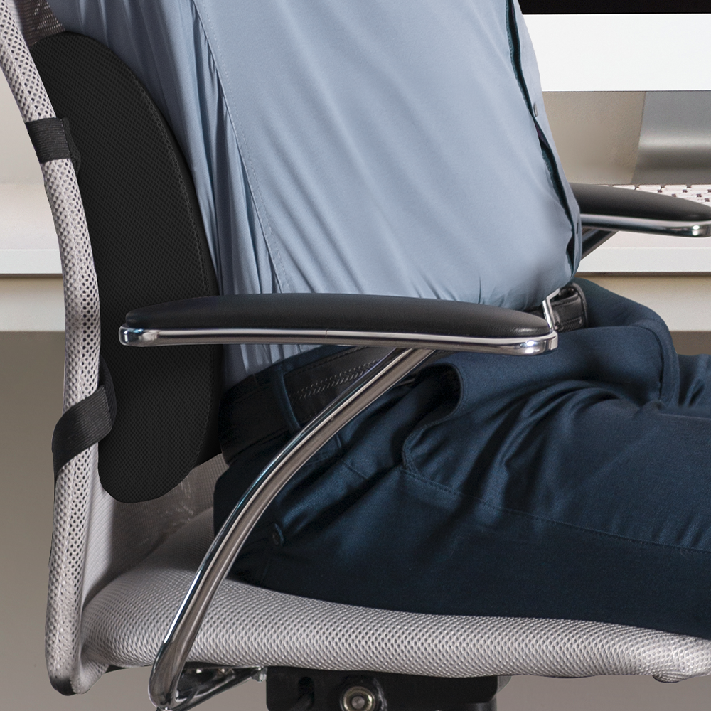 Add ergonomic support to any chair with the Gel Back Cushion. It contours to your lower back to help ease pressure and promote healthy posture while the breathable mesh cover and memory foam core keep you cool and supported. Whether at work, in the car, or at home, comfort follows you.