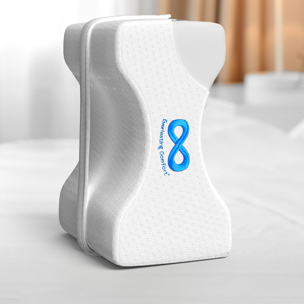 Support your hips and spine while you sleep with the memory foam Knee Pillow. Designed to fit comfortably between your legs, it promotes alignment and relieves pressure points. The ventilated foam and breathable cover keep you cool through the night.