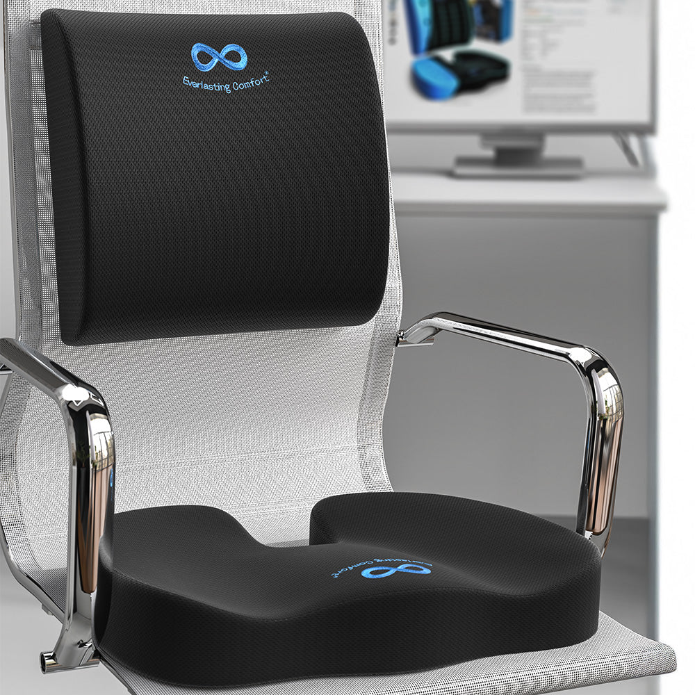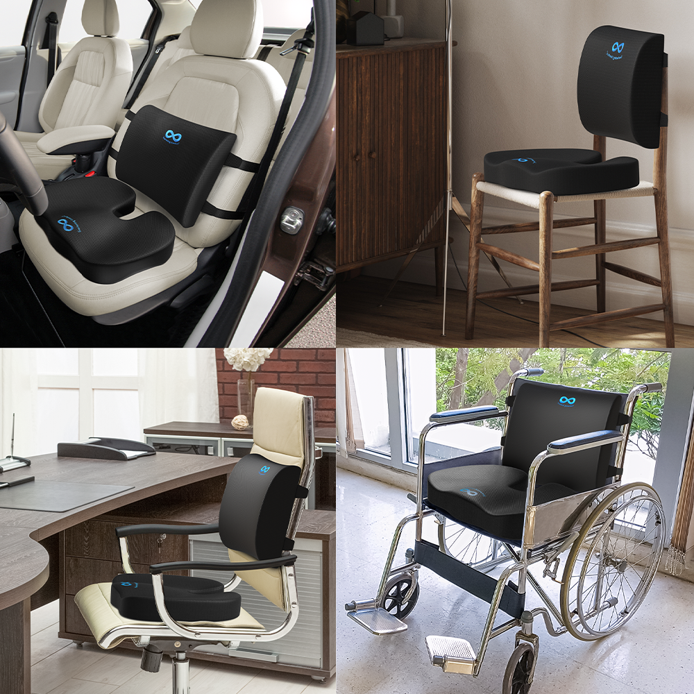Experience total sitting comfort with the Gel-Infused Seat and Back Cushion Combo. The seat cushion features a U-shaped cutout to reduce pressure on your tailbone, while the back cushion supports your spine and lower back. Both cushions are made with breathable, gel-infused memory foam for cooling relief.