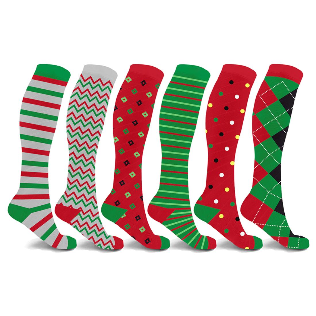Christmas Themed Knee-High Compression Socks (6 Pairs)