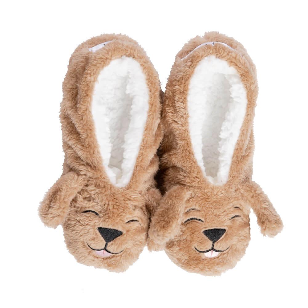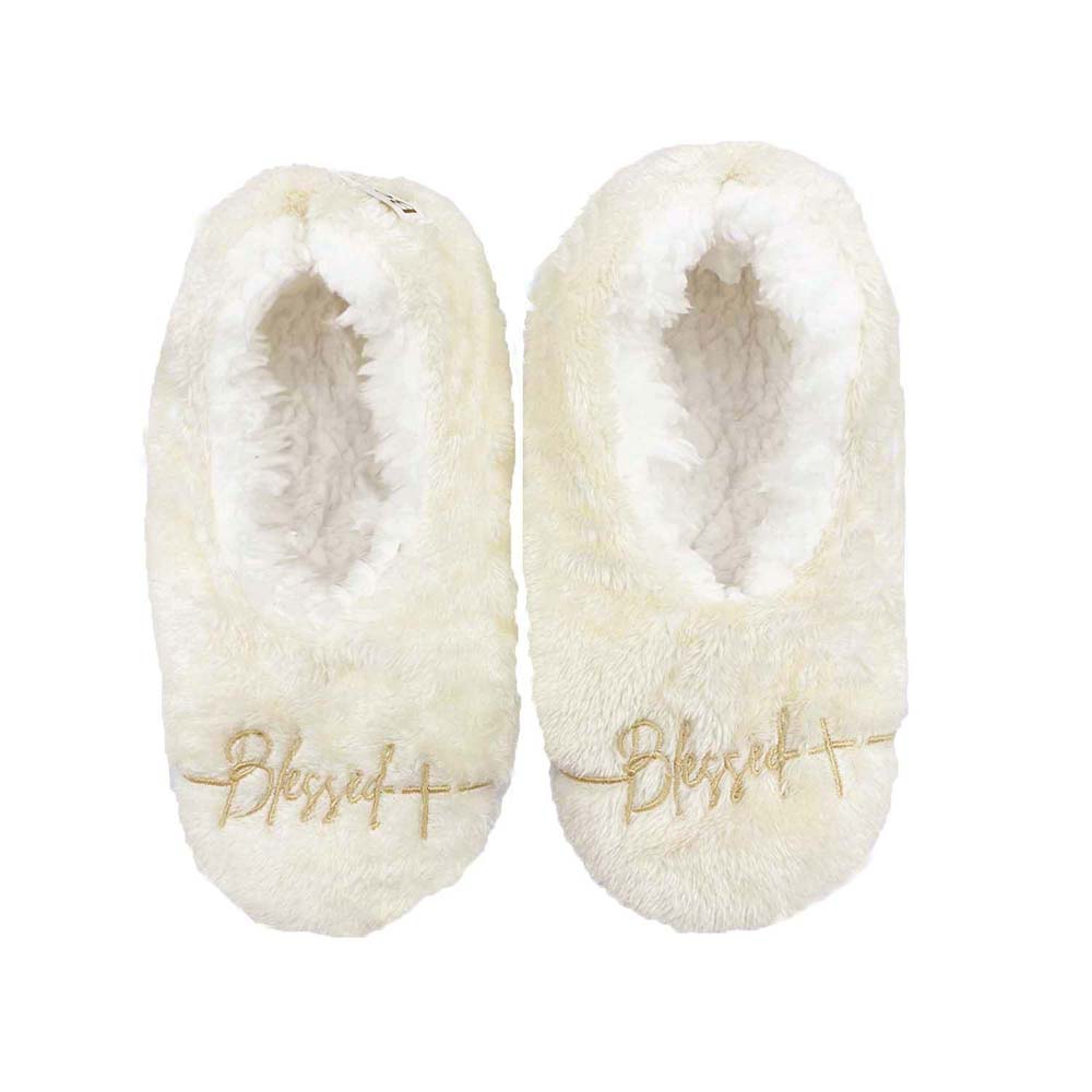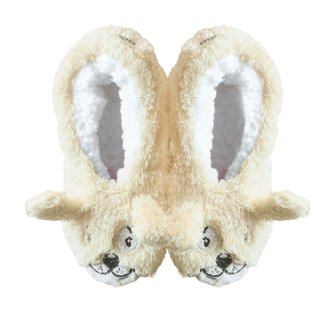 Plush and warm, finished with a skid-resistant rubber design on the sole