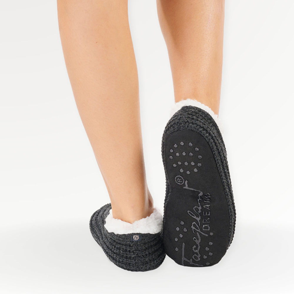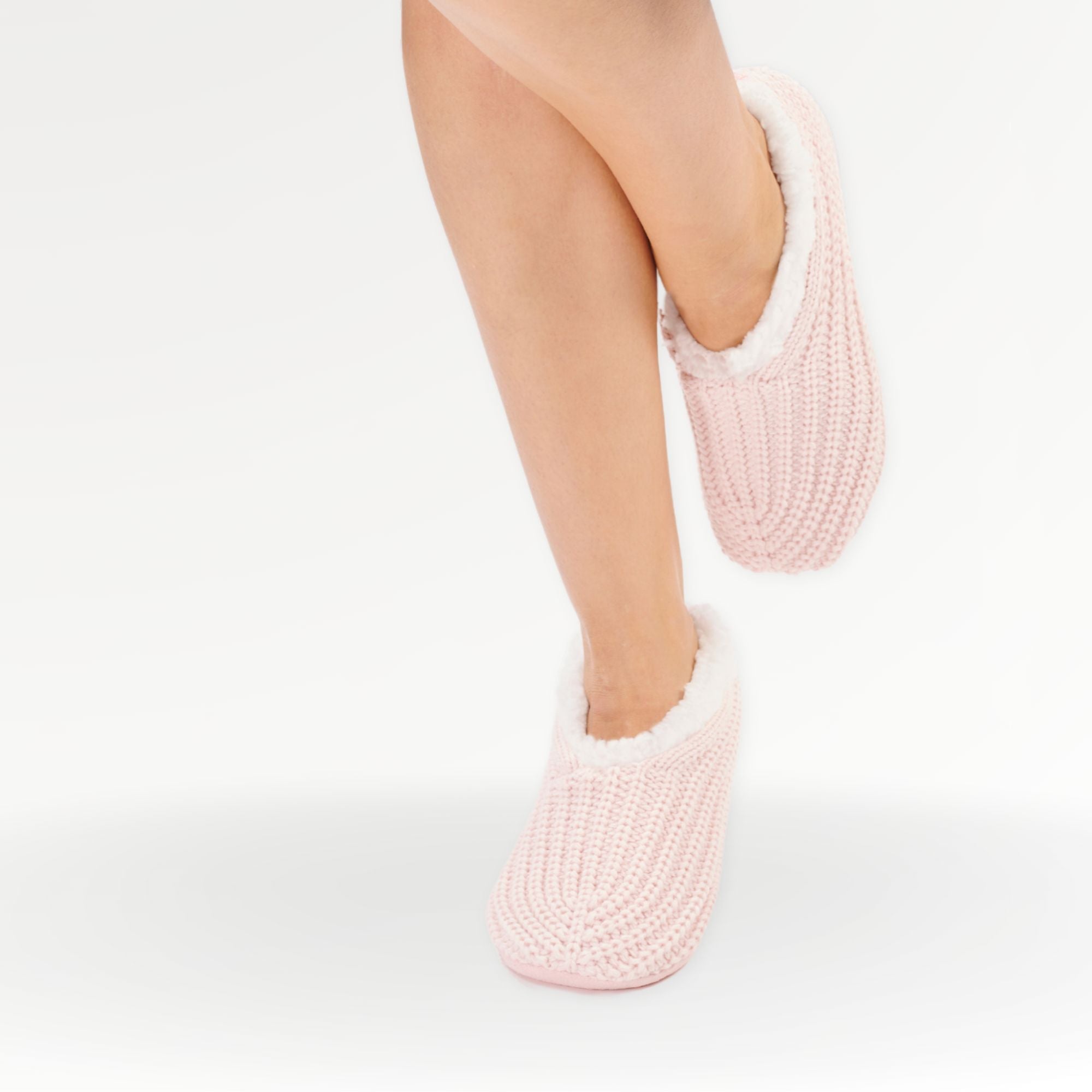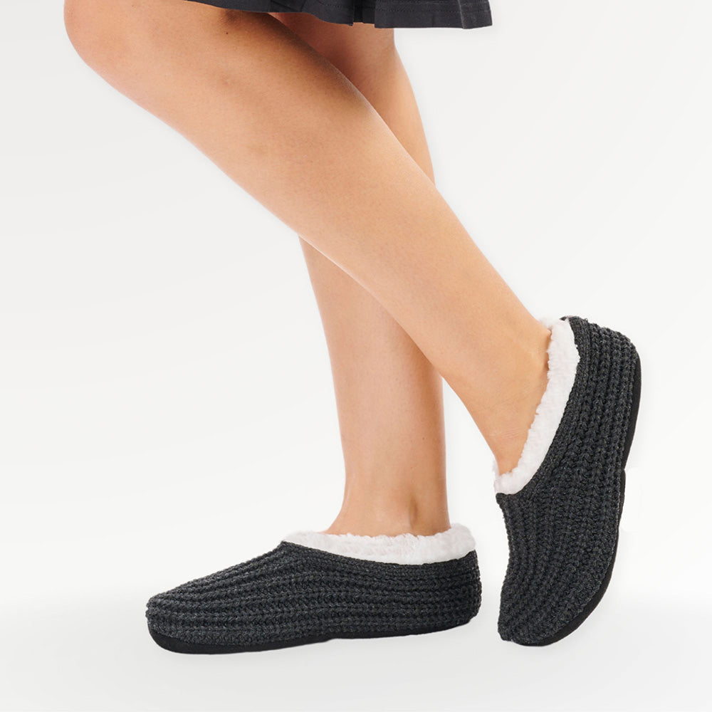 • Plush and warm, finished with a skid-resistant rubber design on the sole
