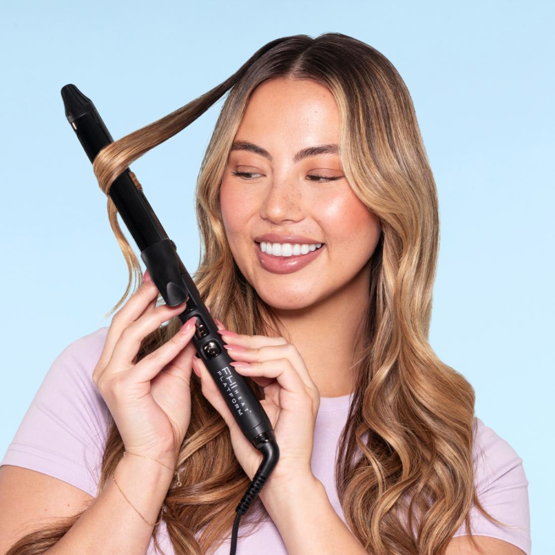 The Platform Ti Luster Pro Curler heats up fast with a titanium barrel infused with magnesium for smooth, silky results.