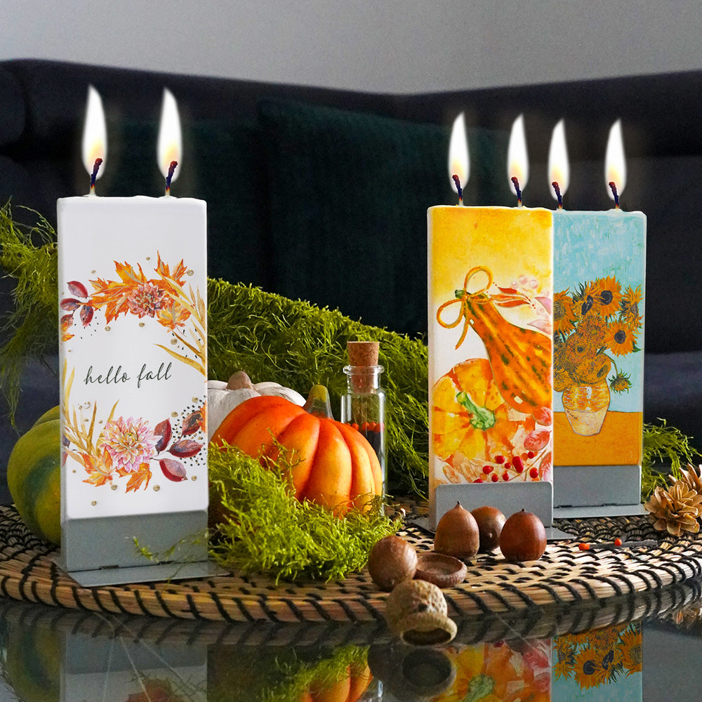 • Includes three (3) Handcrafted Flat Candles in design of your choice
