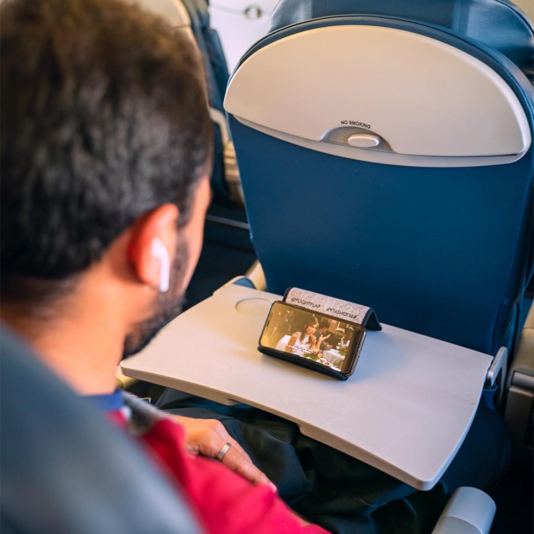 The Flight Flap is your ultimate travel companion—make your travel more enjoyable by viewing entertainment on your phone or tablet at eye level, without neck and back pain while keeping your hands free.