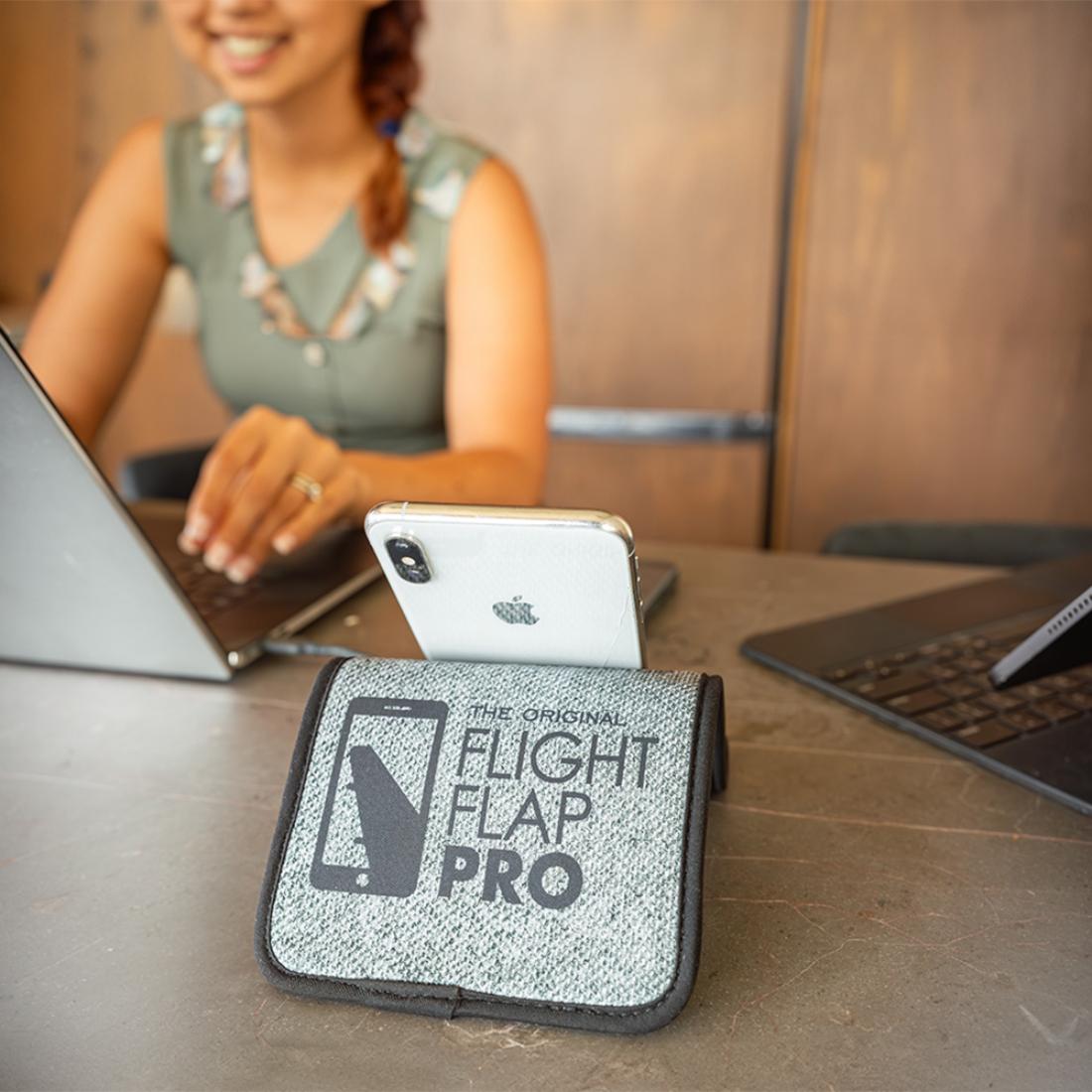 The Flight Flap Pro is a luxe phone and tablet holder made for seasoned travelers. Crafted from durable neoprene, lycra fabric, and quality stitching, the Flight Flap Pro effortlessly bends and folds to handle any travel scenario. Enjoy the ideal phone or tablet positioning with a lightweight, user-friendly design ideal for on-the-go globetrotters.
