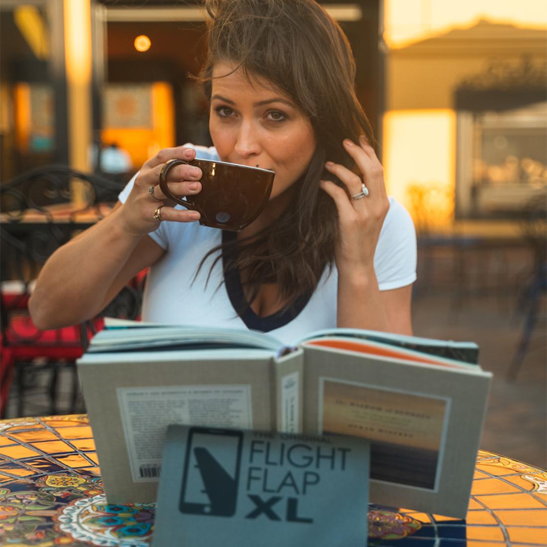 The Flight Flap is your ultimate travel companion—make your travel more enjoyable by viewing entertainment on your phone or tablet at eye level, without neck and back pain while keeping your hands free.