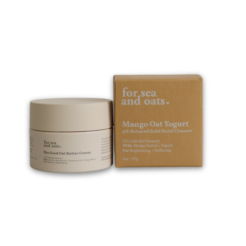 Indulge in calm, moisturized facial skin with The Good Oat Combo. This set includes a cleansing bar that not only produces creamy foam, but also doubles as a rinse-off mask with a mildly acidic pH for vital skin barrier protection. Paired with a versatile, minimalistic cream infused with four luxurious fruit/seed oils that serves as an ideal facial oil, eye cream, or lip mask, offering the goodness of natural ingredients for a nourishing skincare routine.