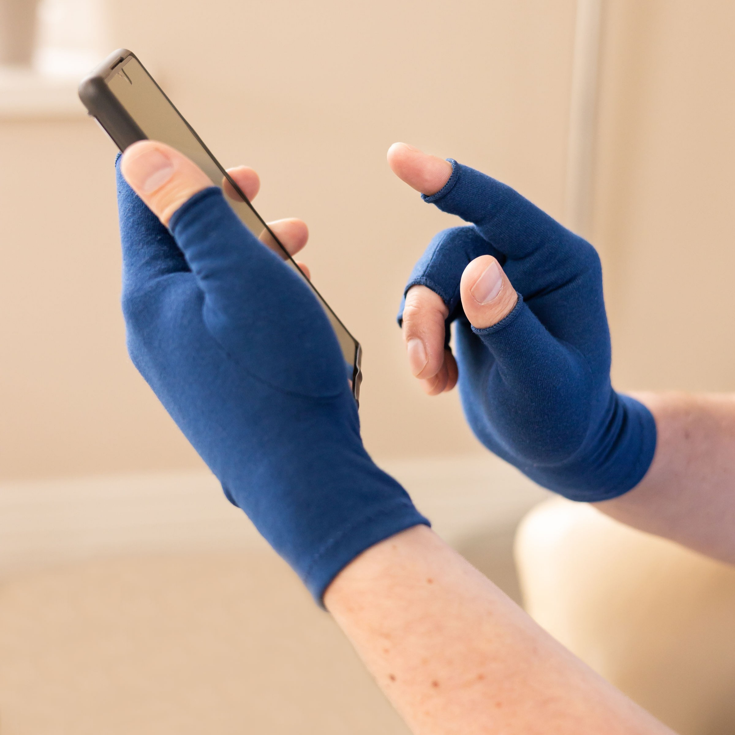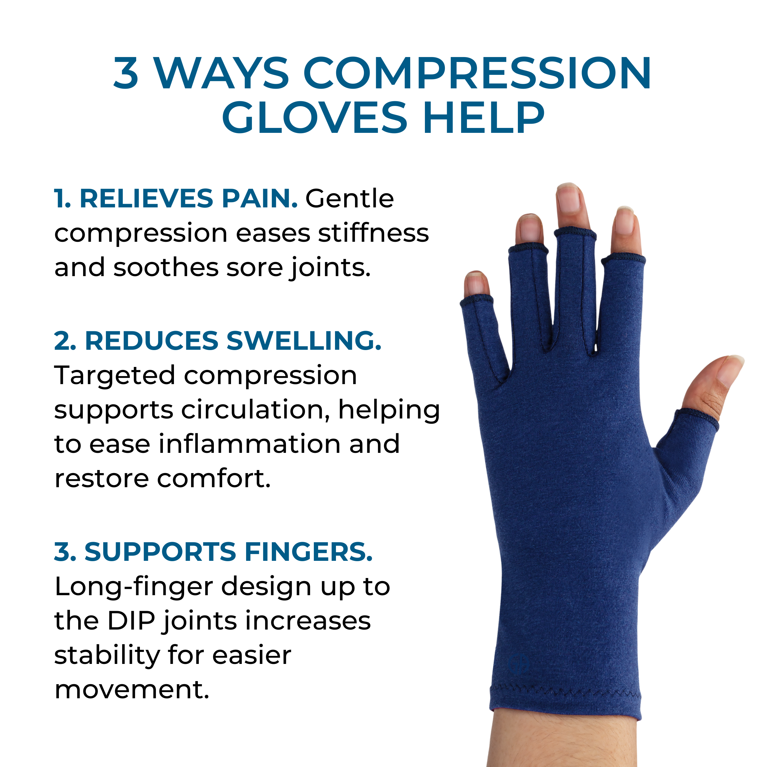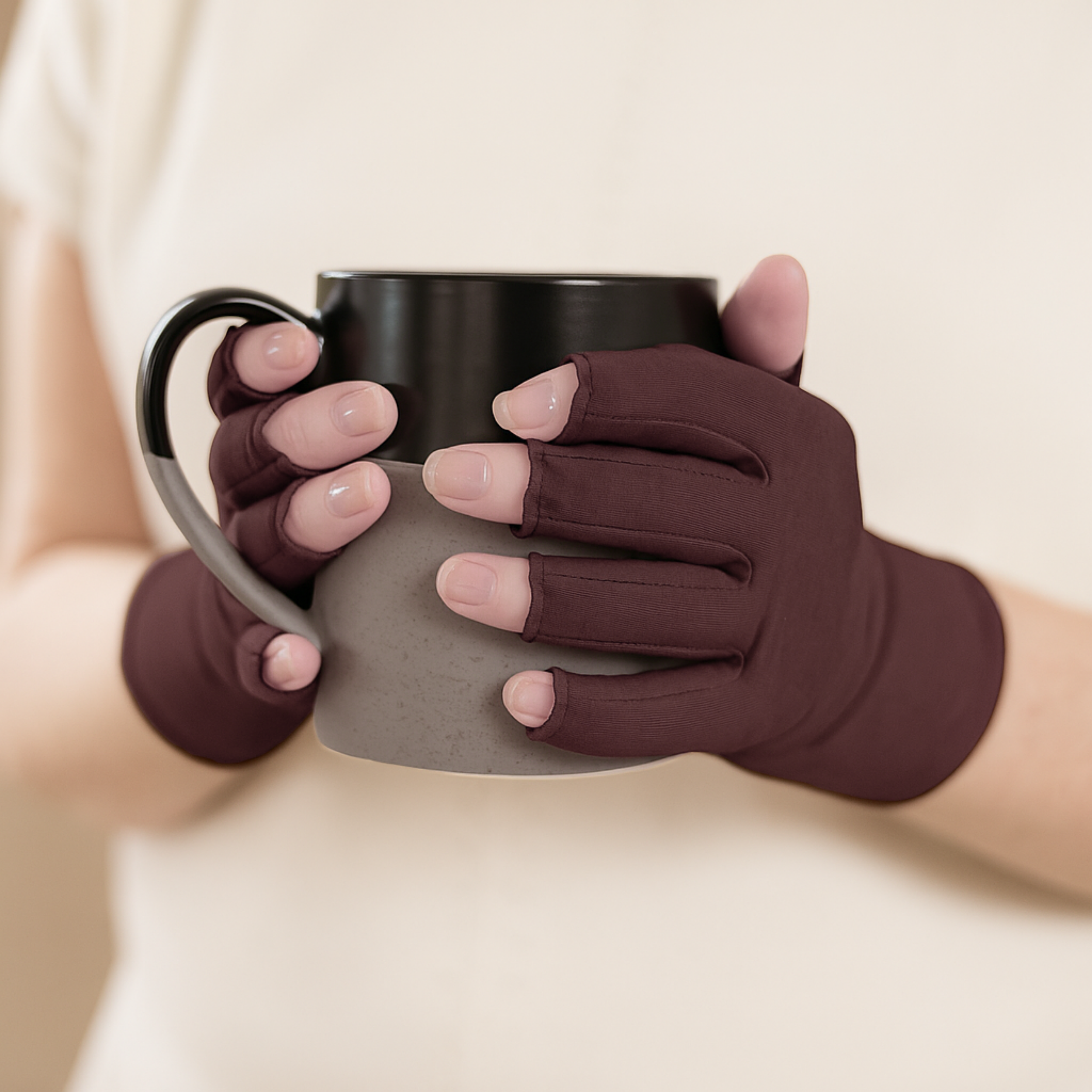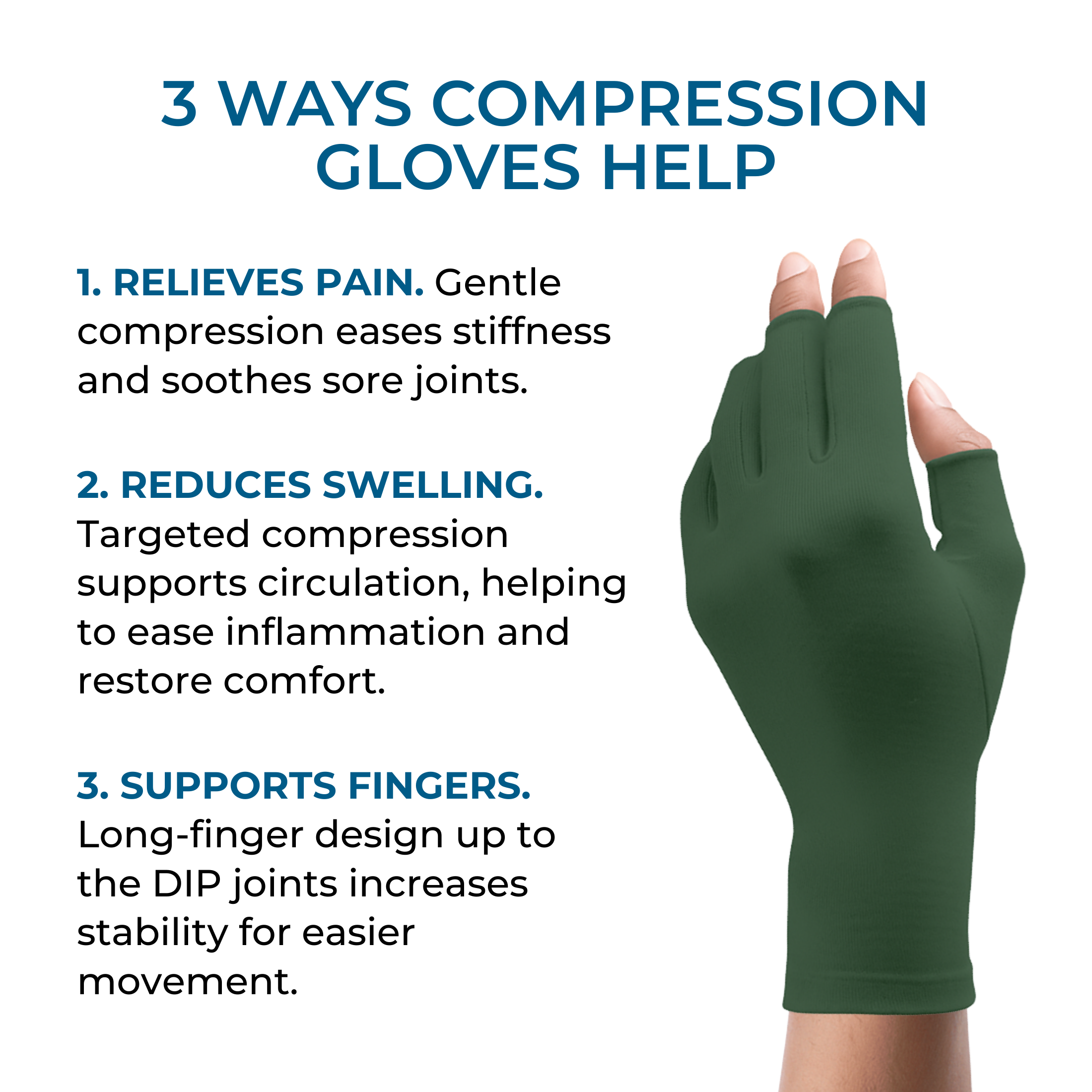 Get a hug for your hand! Gentle compression soothes sore fingers and supports sore joints. Designed by a hand therapist to relieve arthritic pain and swelling these gloves are great for people living with trigger finger, osteoarthritis, rheumatoid arthritis, EDS (hypermobility), neuropathy, and more.