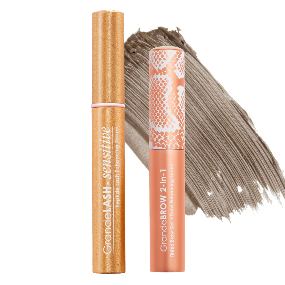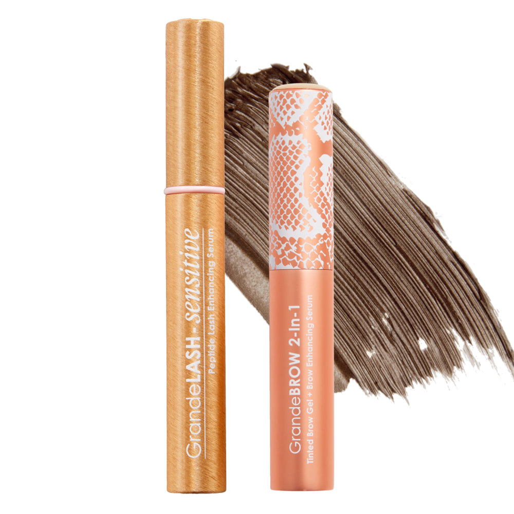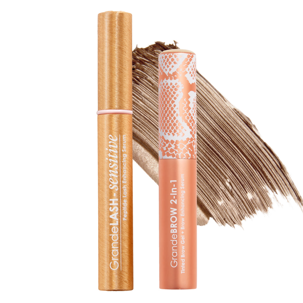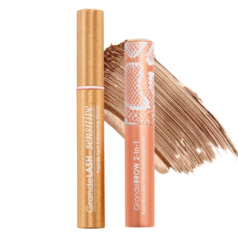 Flaunt thicker, fuller-looking lashes and brows with this serum duo. Developed for sensitive eyes, GrandeLash-Sensitive delivers visibly thicker, longer-looking lashes with less lash fallout in just 6 weeks. GrandeBrow 2-in-1 is a tinted brow gel with mini fibers and brow-enhancing serum that delivers instant color and volume, plus thicker and healthier-looking brows over time.