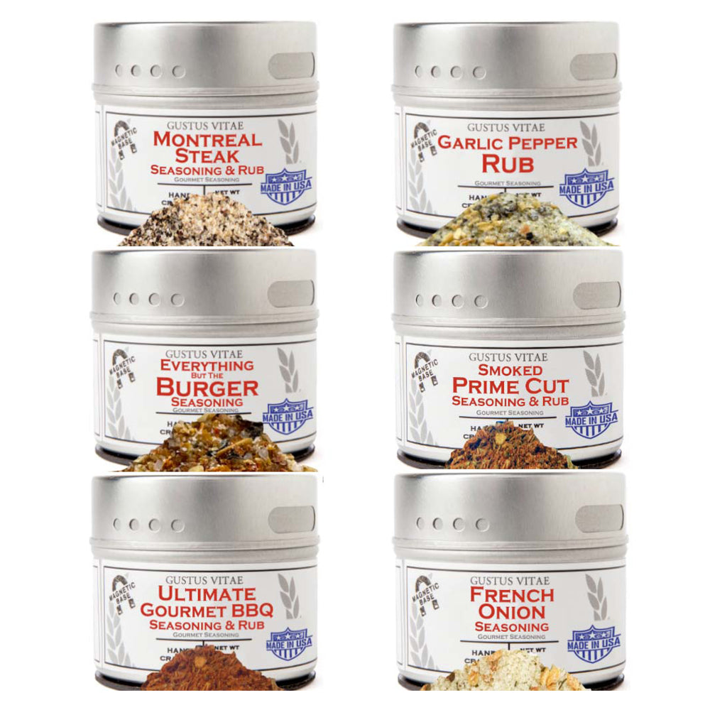 Say goodbye to old, bland seasonings for your steaks and beef dishes, and add some serious flavor and gourmet flair to your cooking game with this handsomely curated collection of six gourmet spice blends and rubs.