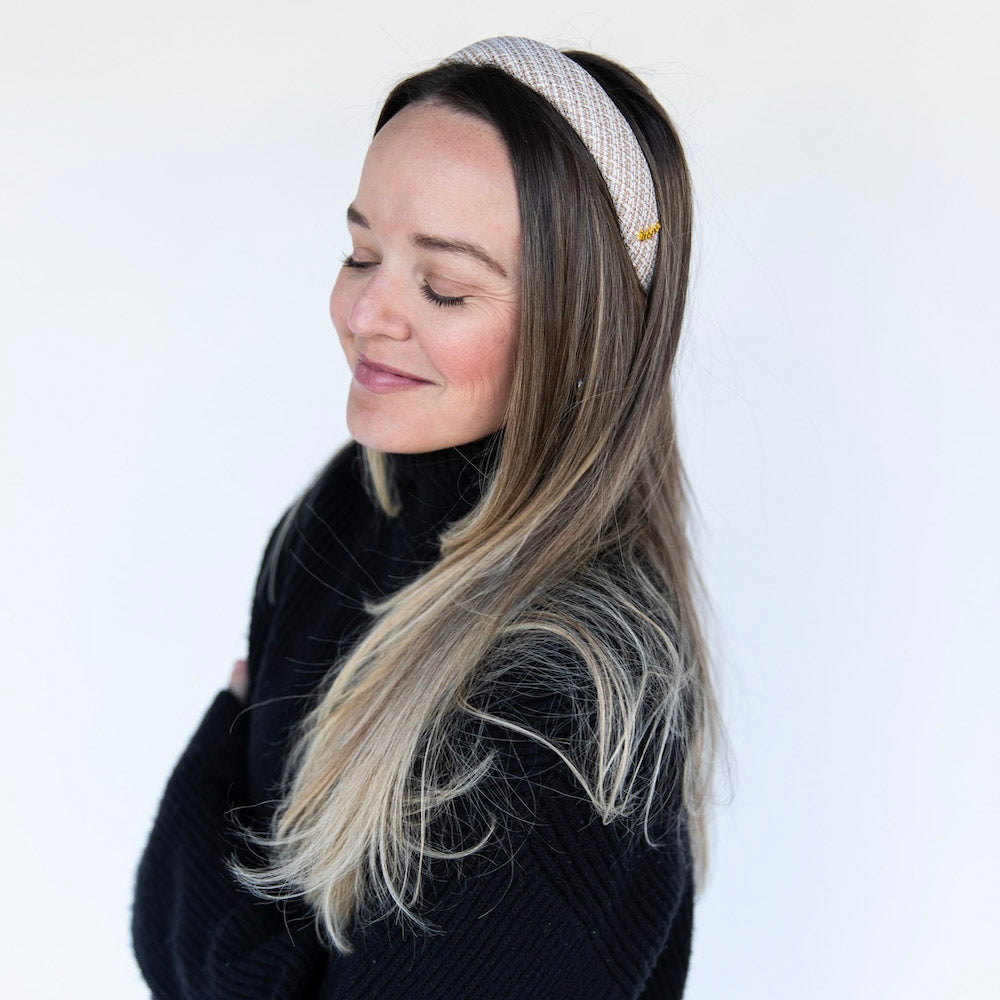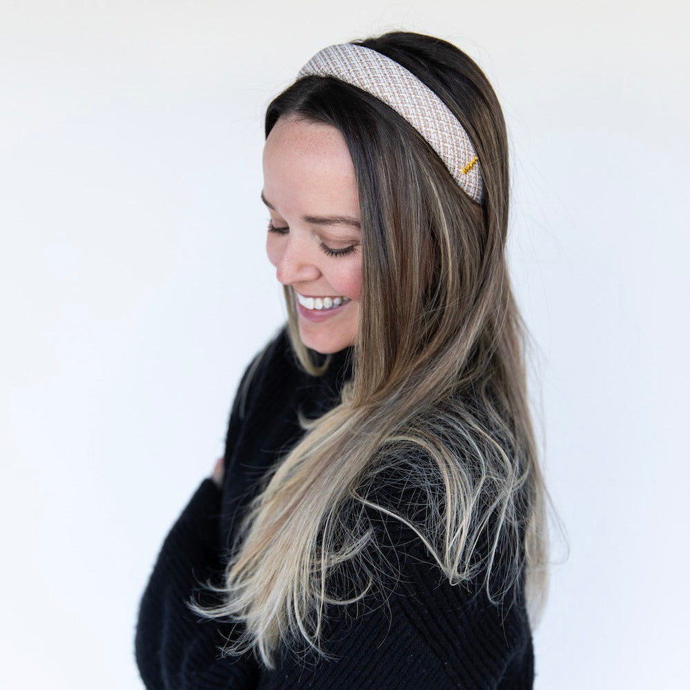 A timeless staple with subtle texture. The Classic Padded Tweed Headband features a structured silhouette wrapped in classic tweed for a polished, pulled-together look. The padded shape adds comfortable height, while the woven finish gives just enough dimension to stand out. Easy to style and endlessly versatile, it pairs as effortlessly with denim as it does with tailored layers.