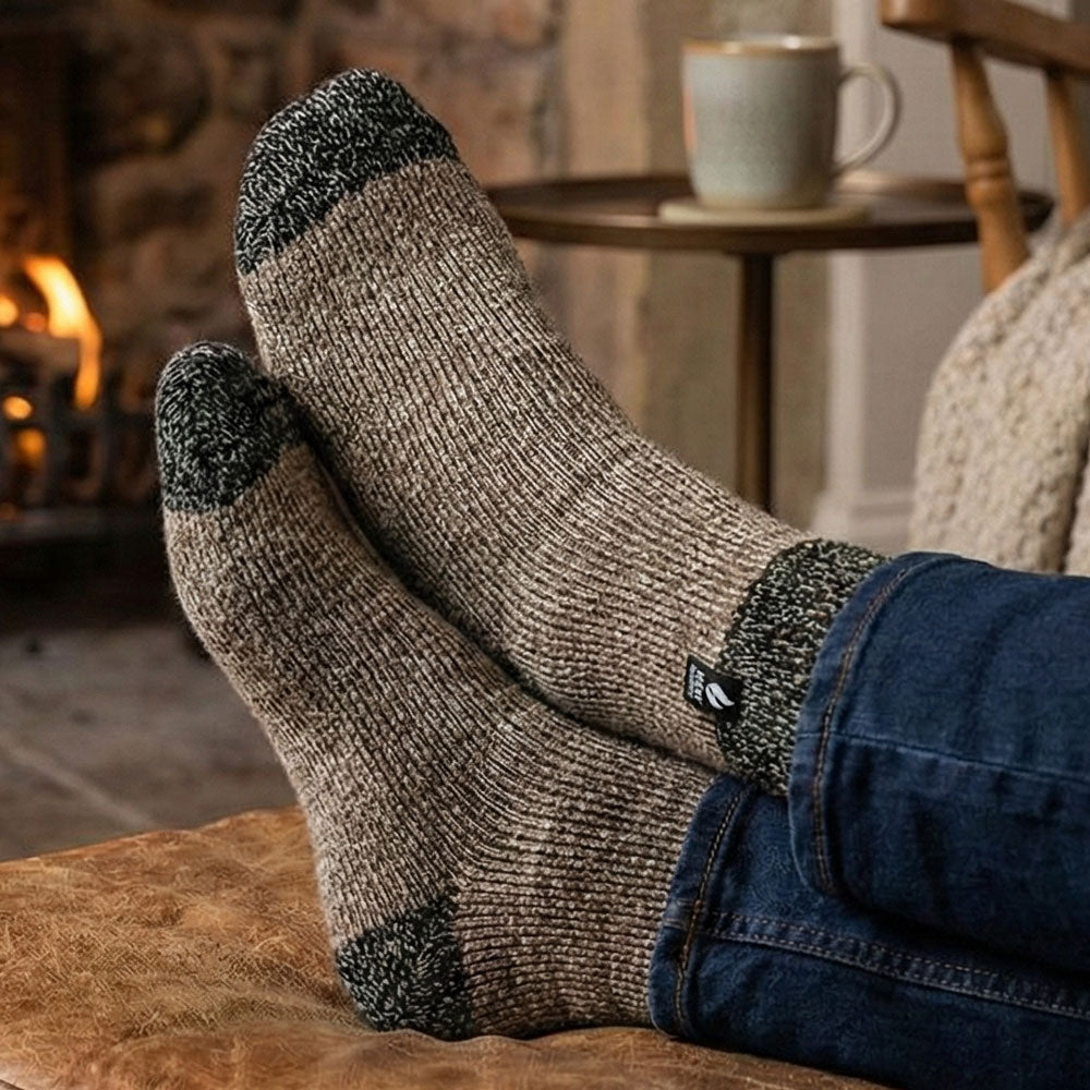 The Men's Block Twist Crew Socks are seven times warmer than the average cotton sock with a striking and fashionable block twist design. Keep feet warm on the coldest of days and pull on a pair of these thermal socks. Thick, chunky, and with a massive TOG (thermal overall grade) rating of 2.34, they're made from advanced thermal yarns for softness and warmth.