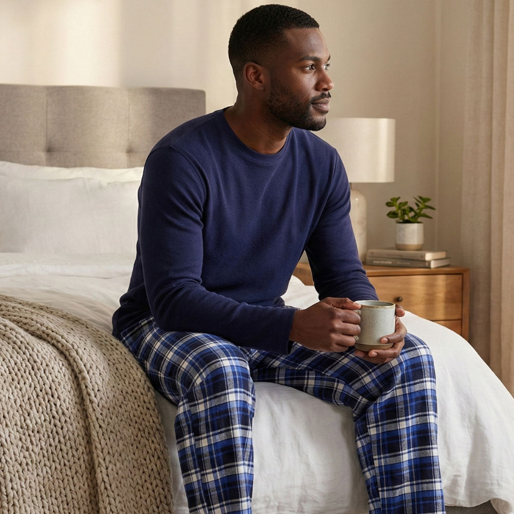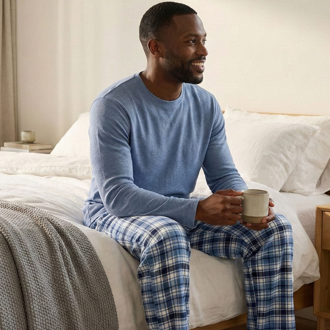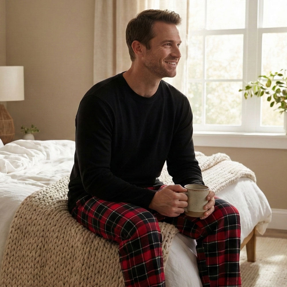 The Men's Waffle Top & Flannel Pants Pajama Set combines a soft waffle-knit top with cozy plaid flannel pants—your go-to for warmth, comfort, and pure relaxation after a long day.